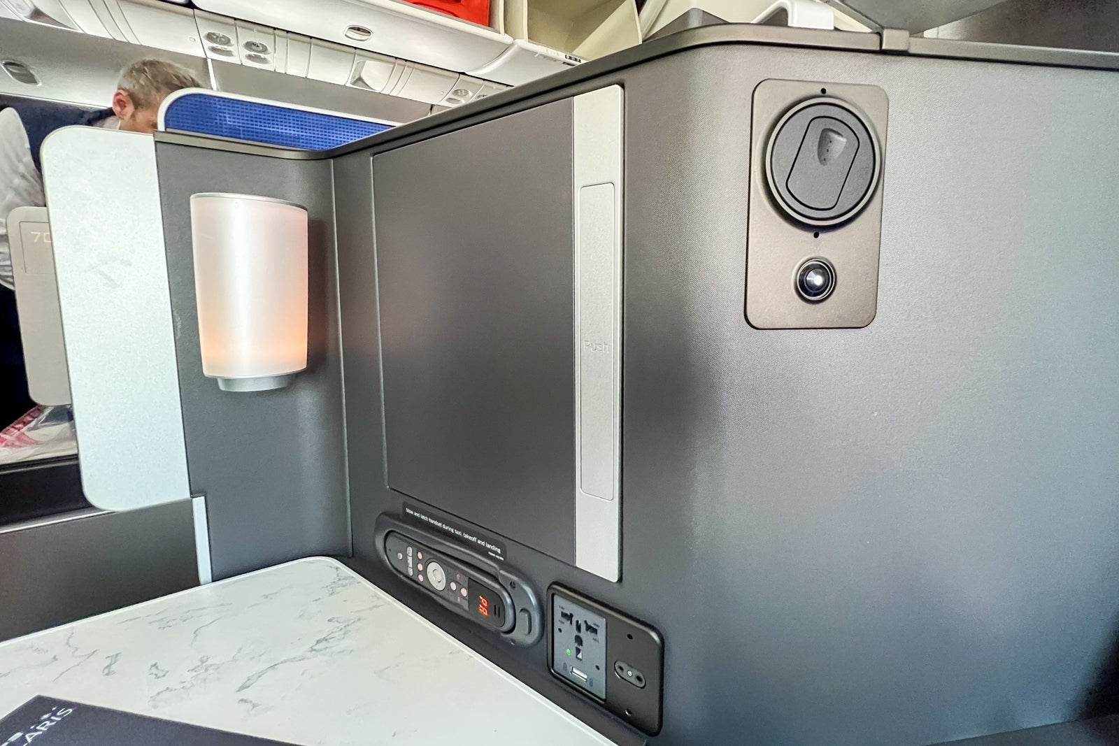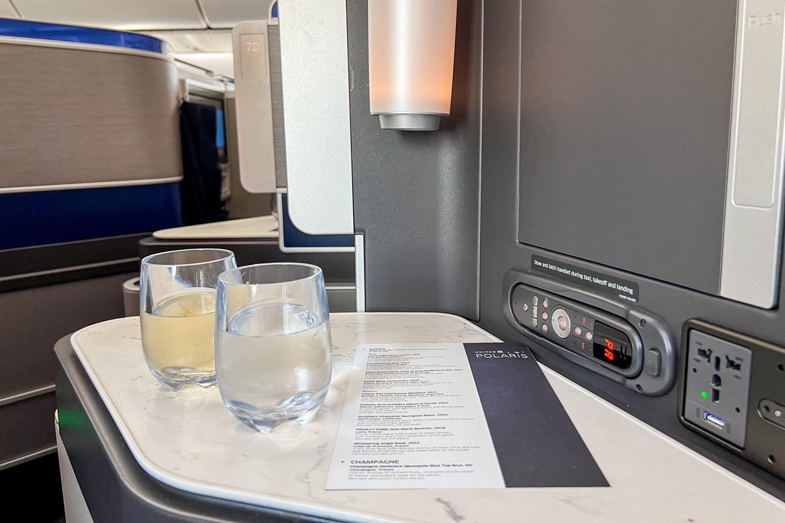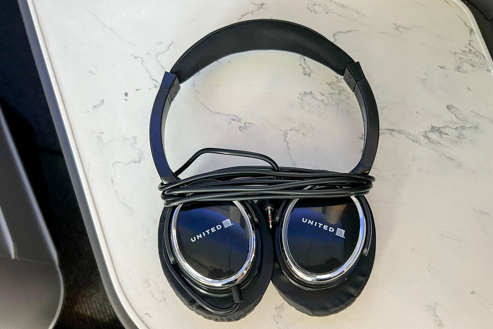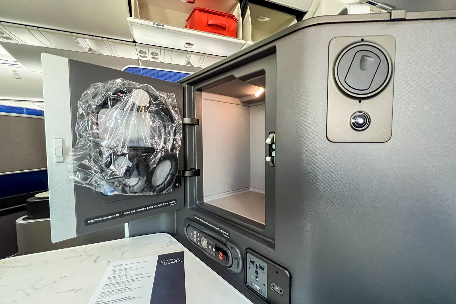 On the entertainment front, United stocks each Polaris seat with basic overhead noise-canceling headphones that you can plug into the seat-side jack. These aren't high-quality fixtures, but they do cancel out a certain decibel level of noise and work well with the entertainment system. Unfortunately, you cannot pair your own headset via Bluetooth to the entertainment system (though that will hopefully change in the next few years based on United's current planning).