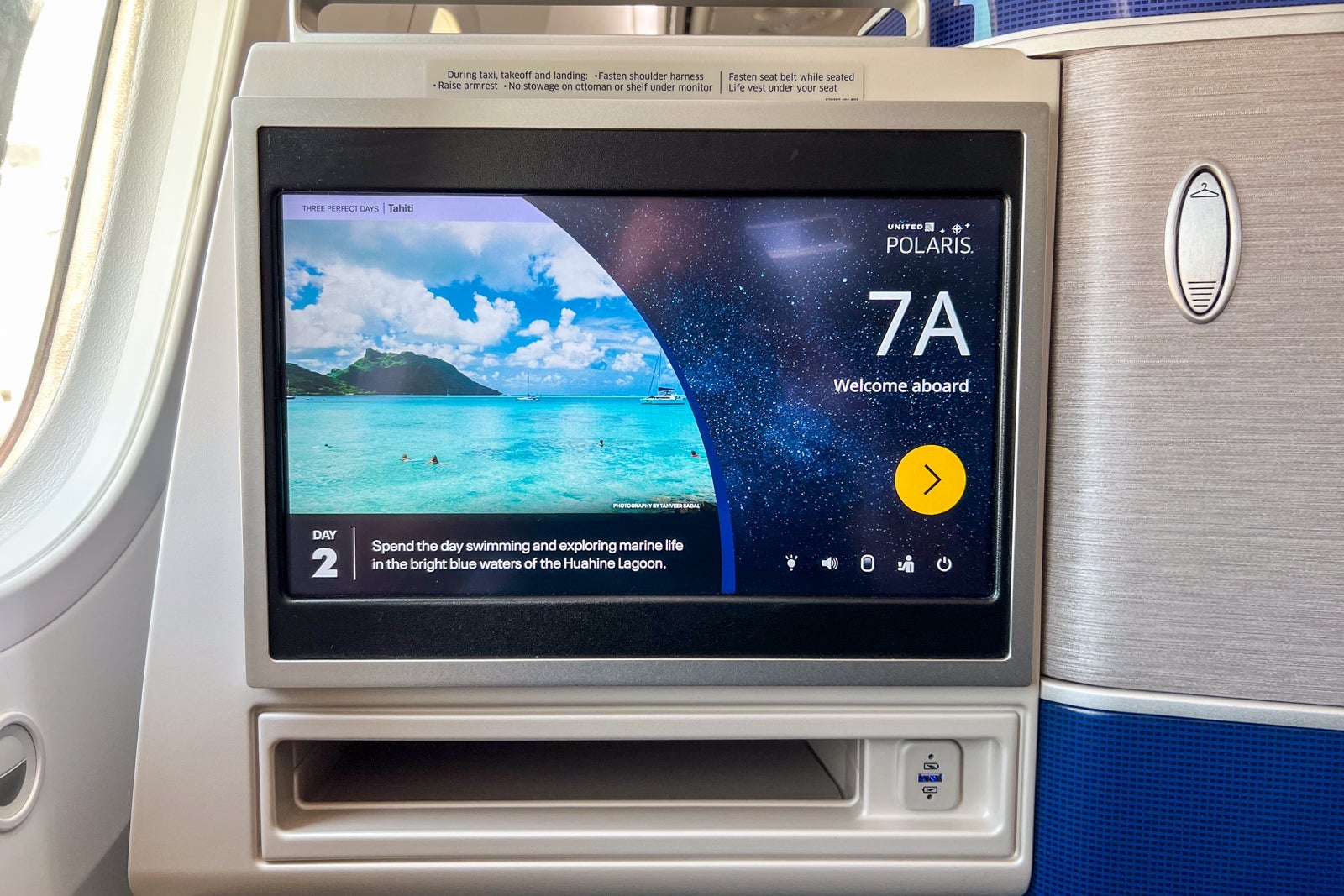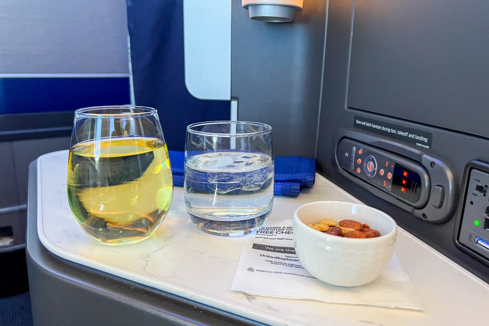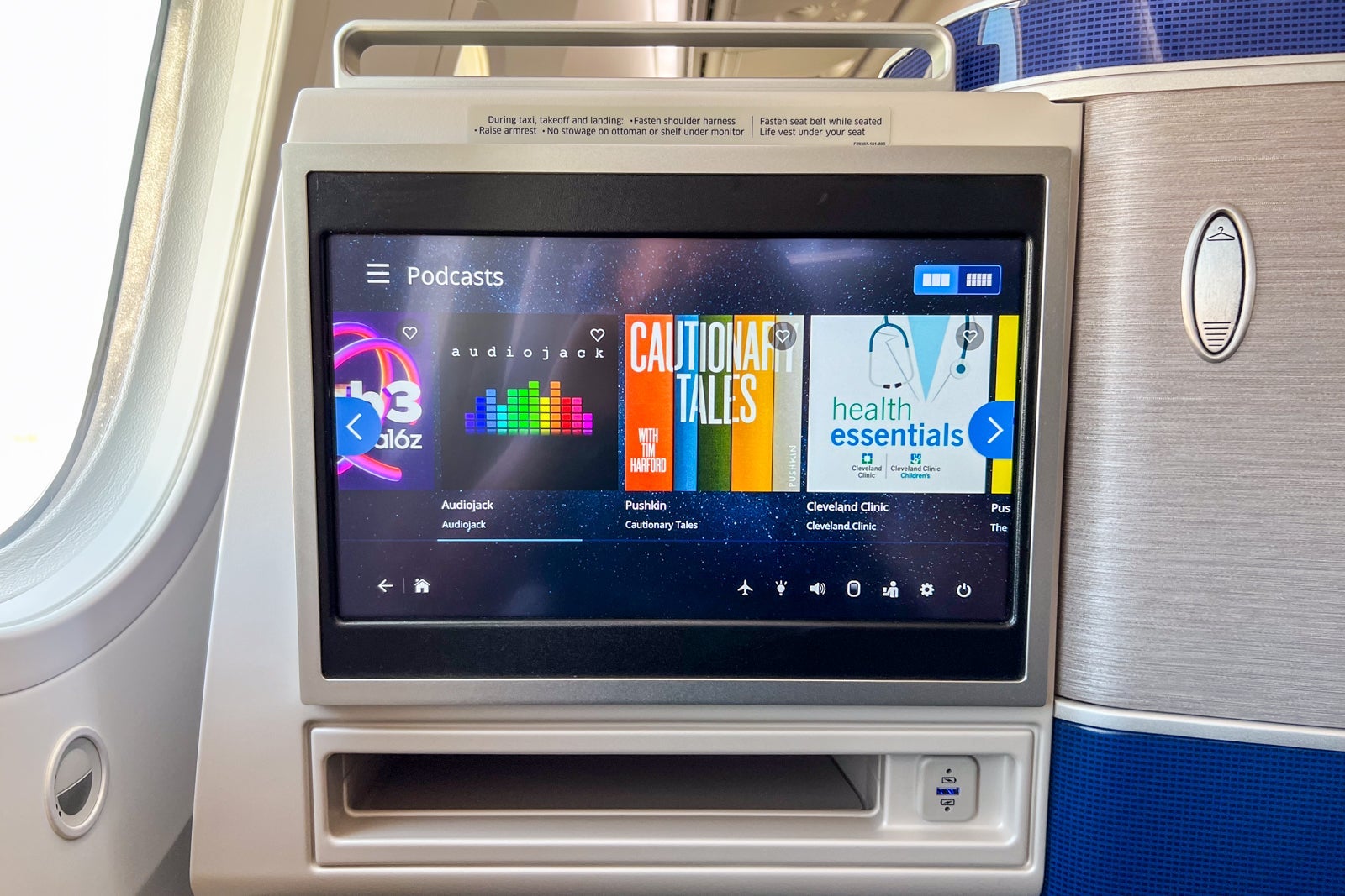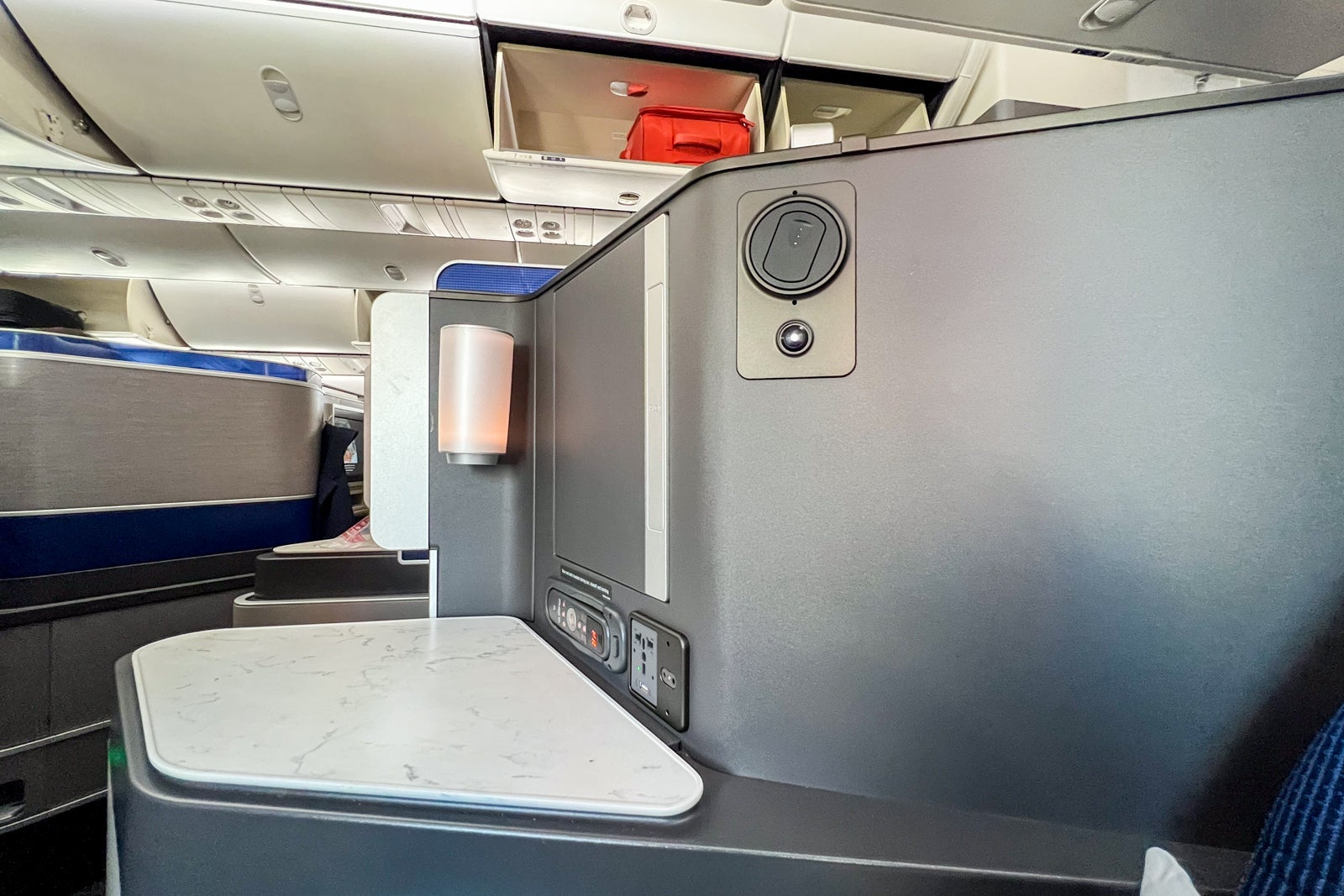On the entertainment front, United stocks each Polaris seat with basic overhead noise-canceling headphones that you can plug into the seat-side jack. These aren't high-quality fixtures, but they do cancel out a certain decibel level of noise and work well with the entertainment system. Unfortunately, you cannot pair your own headset via Bluetooth to the entertainment system (though that will hopefully change in the next few years based on United's current planning).