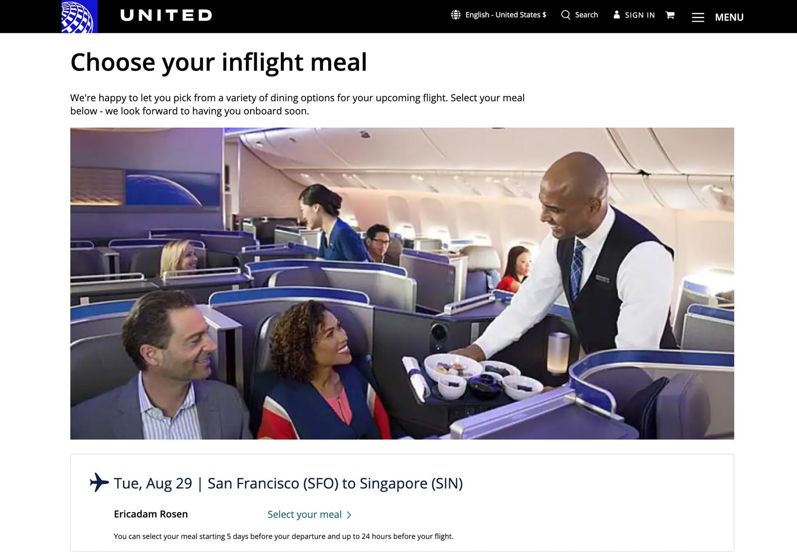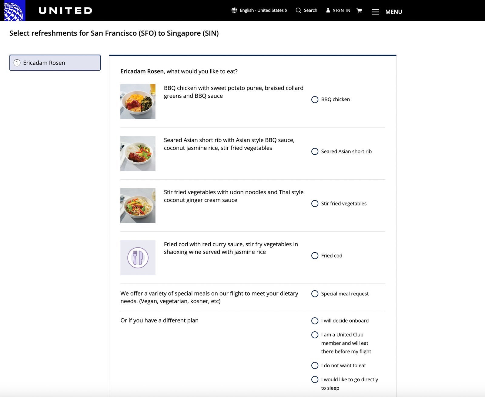 A few days before my flight, I received an email from United asking me if I'd like to preselect my meal.