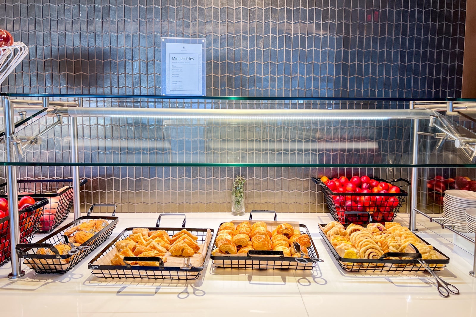 Luckily, the buffet was well stocked with hot items like scrambled eggs, chocolate chip pancakes, cold cuts, fresh fruit and pastries.