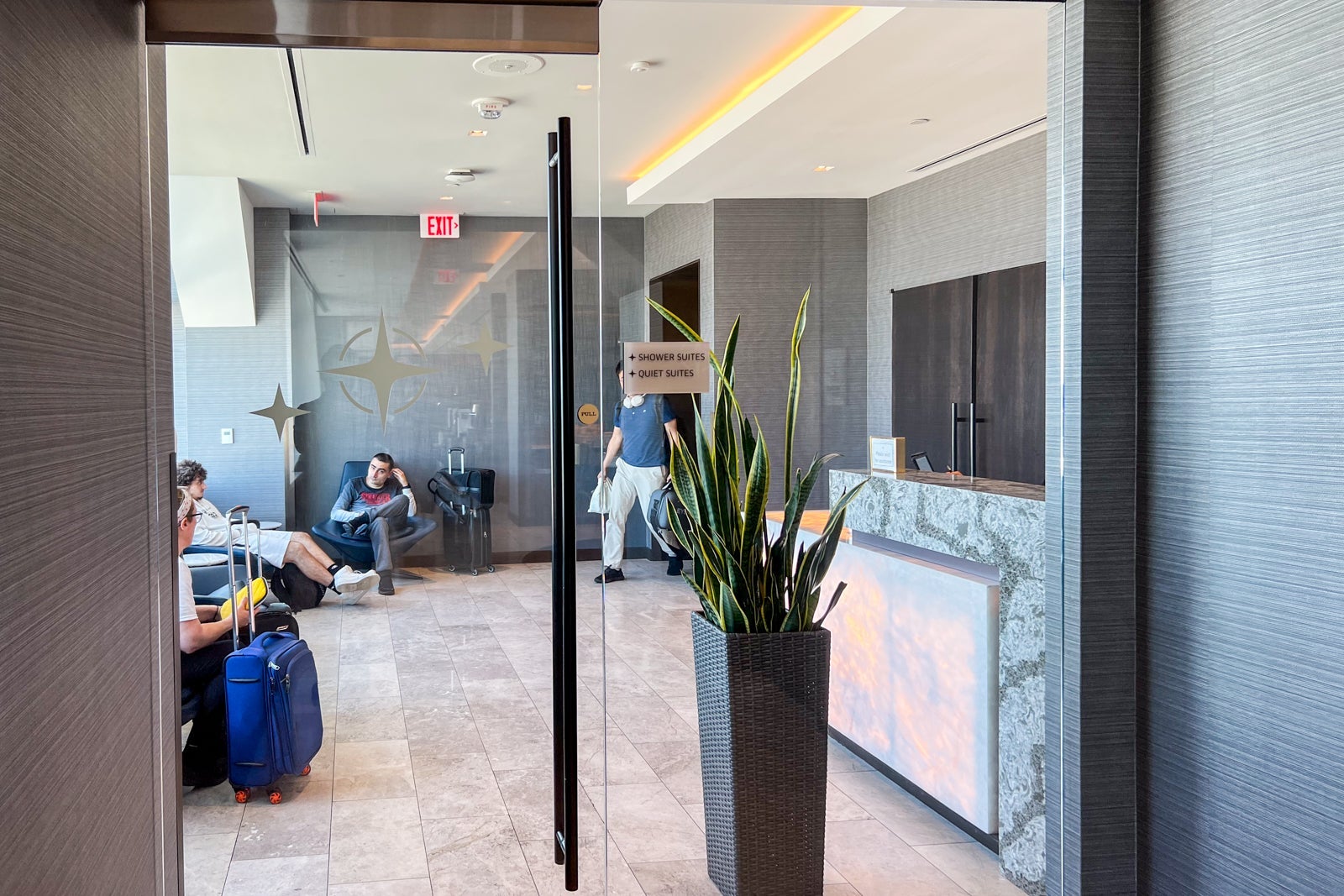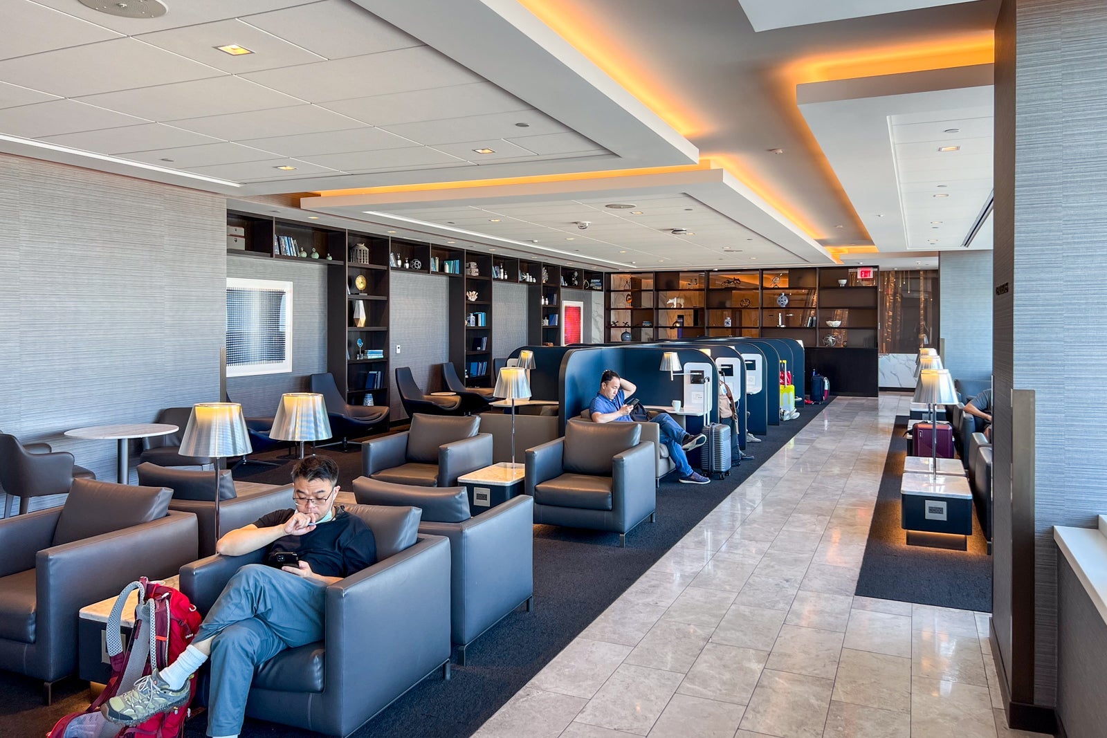The morning I visited, though, it was bustling with folks either arriving from overnight flights and connecting, or preparing to depart on some of the airline's long-haul routes to other continents. I found a lot of people snoozing in the quiet seating area on the first floor, and there was even a lineup of passengers waiting to use the shower facilities.