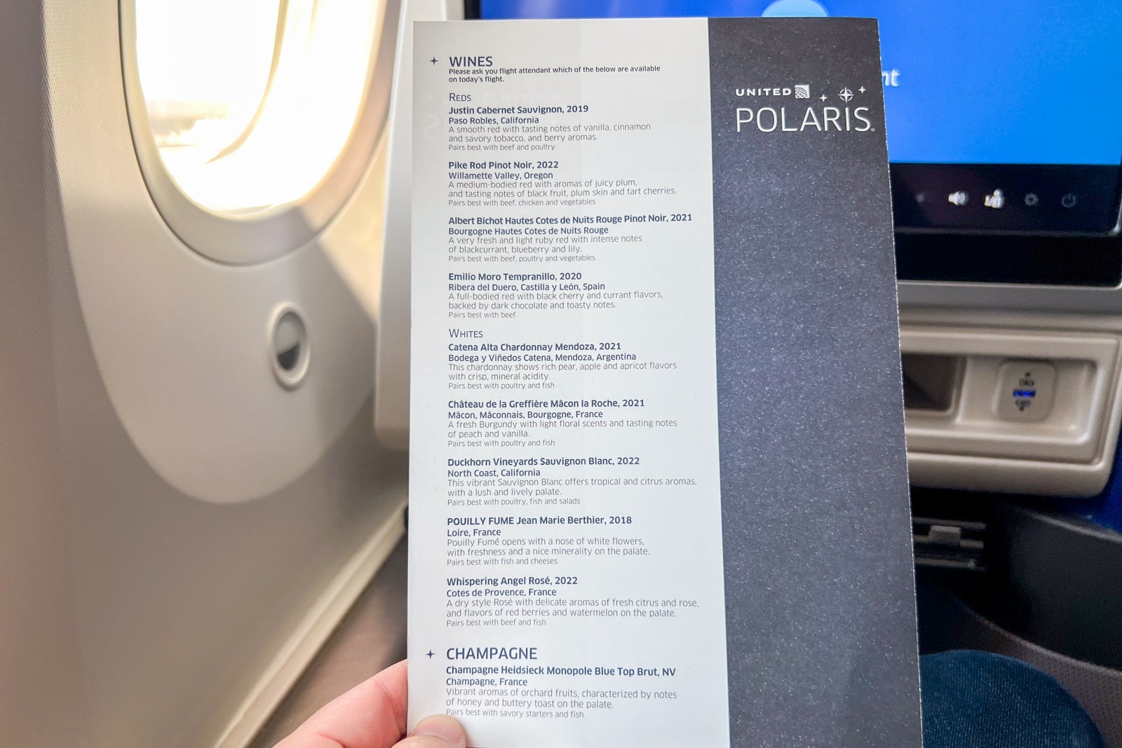 The wine list on my particular flight included: