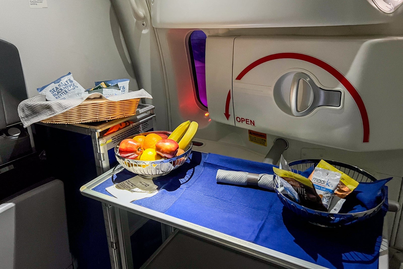 Despite a bumpy departure experience, the flight attendants put passengers at ease with good humor and friendly service. Those working in the Polaris cabin were on hand at all times, passing through regularly to make sure passengers had everything they needed and remaining on call in the galley between meal services to offer travelers snacks and drinks. In short, the crew on this flight could be training models for the airline's long-haul service.