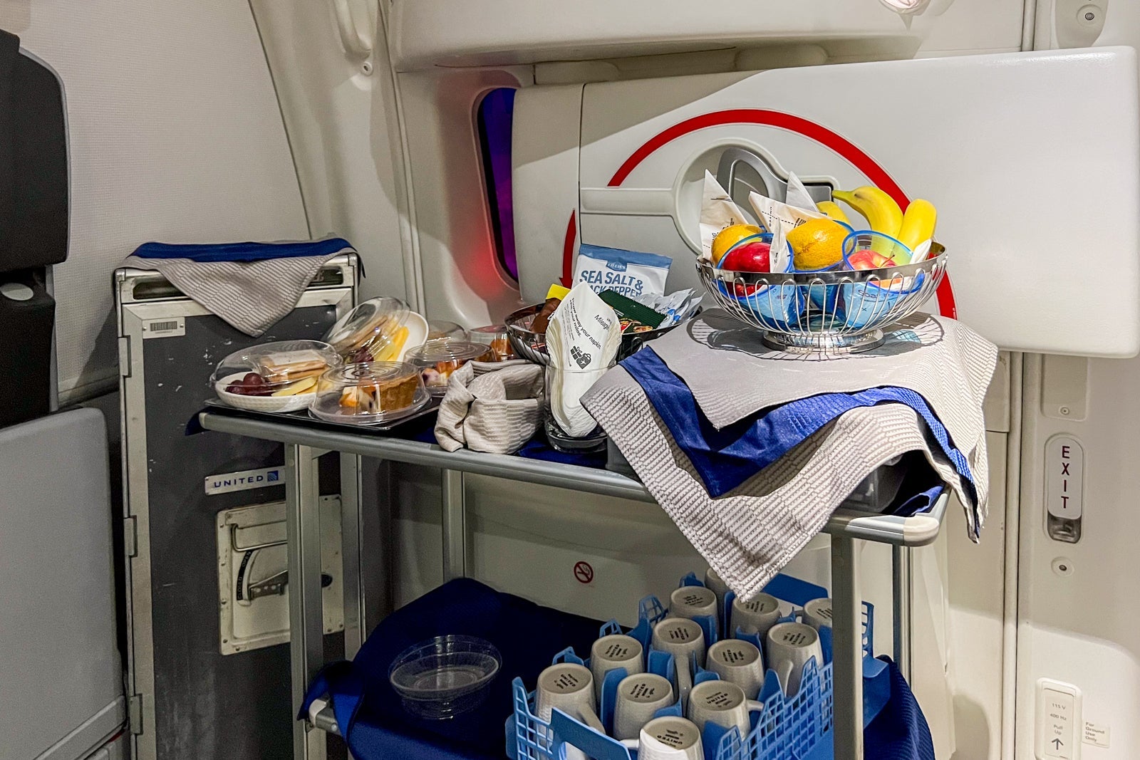 About 30 minutes into the flight, the attendants came through with a beverage cart serving the preordered drinks and ramekins of warm nuts.