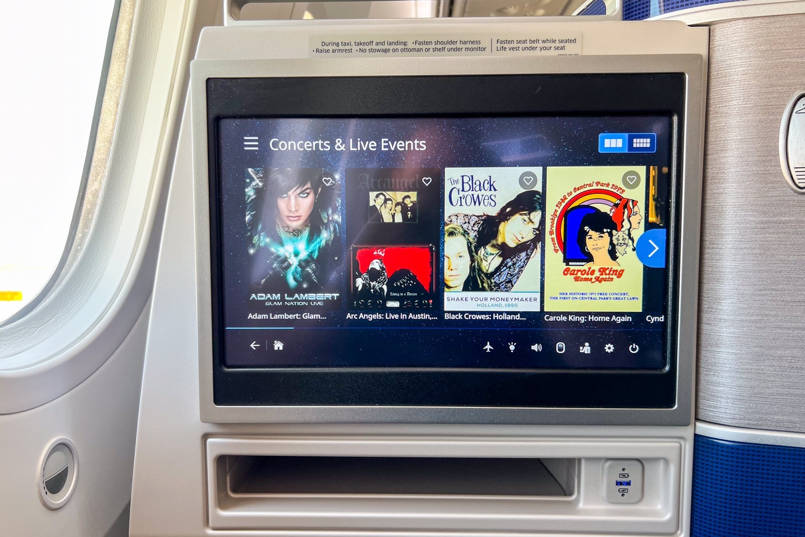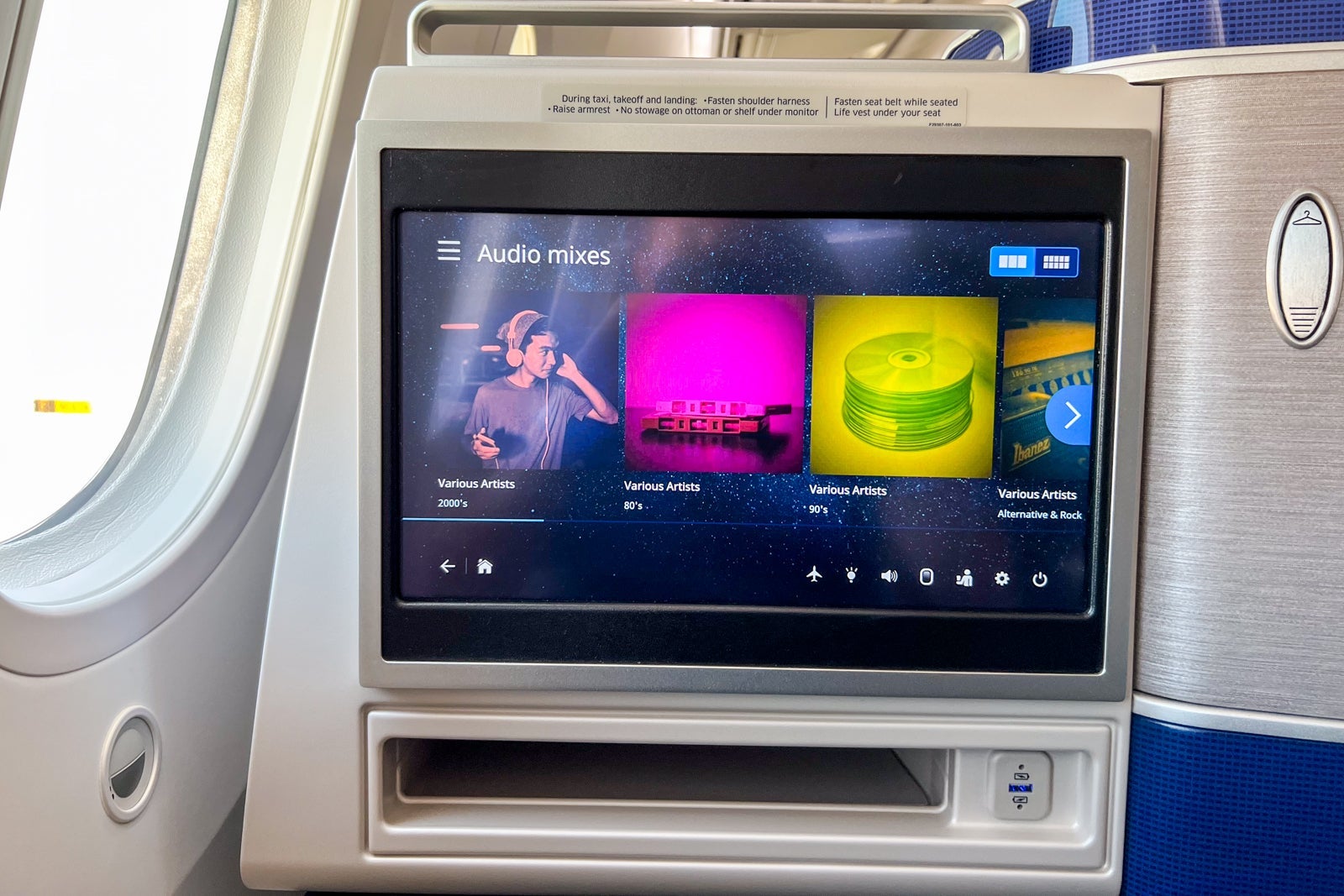 The seats' screens are 16 inches across diagonally and have sharp imagery, not to mention accessibility features for passengers who have specific visual or auditory needs (and United was a pioneer on this front).
