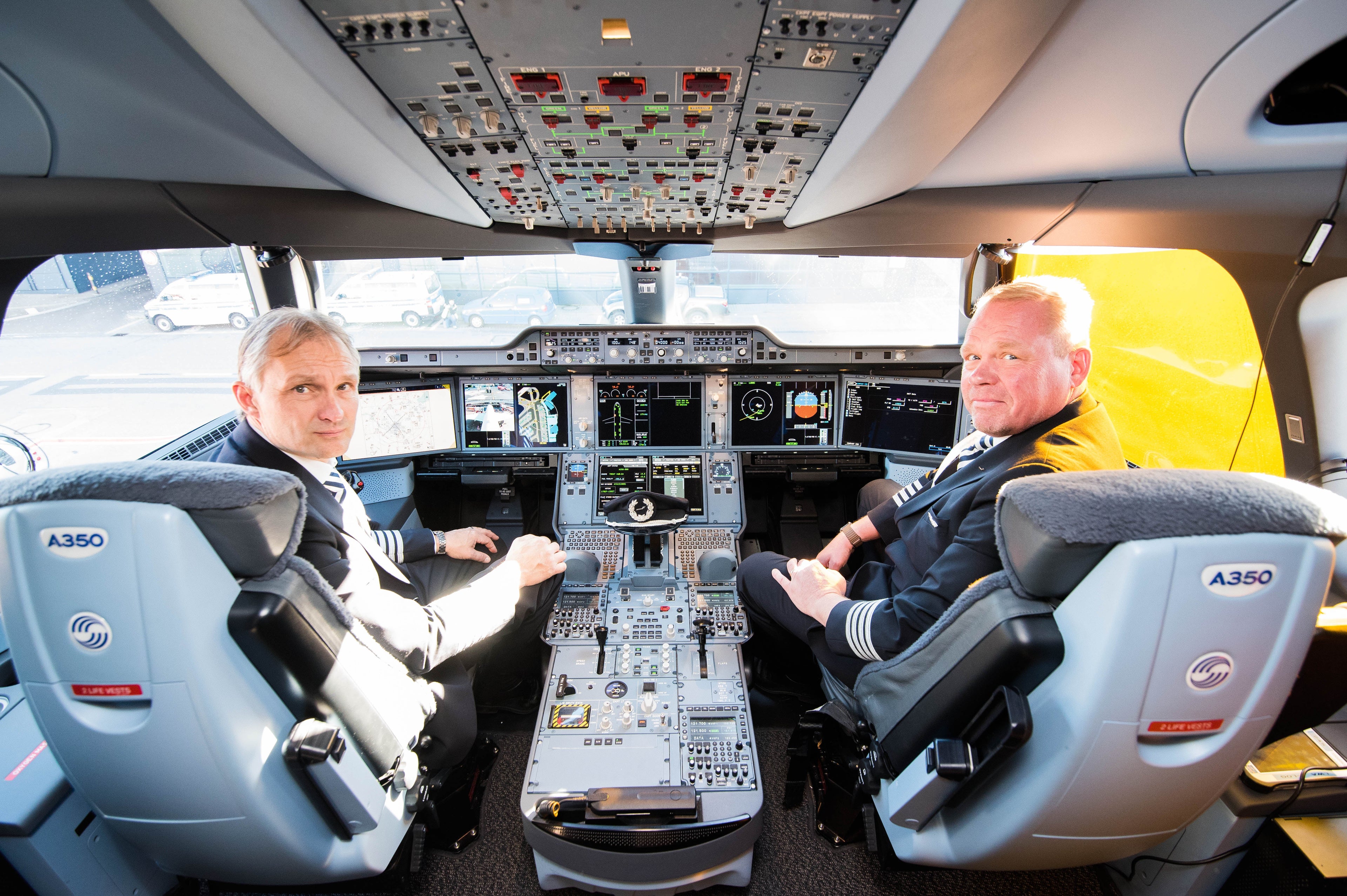 Then look below at the fully digital flight deck of the Airbus A350, the most modern twin-aisle jet in service today: It might as well be a science-fiction spaceship compared to that 727. And it needs just two people to run it, thanks to computers.