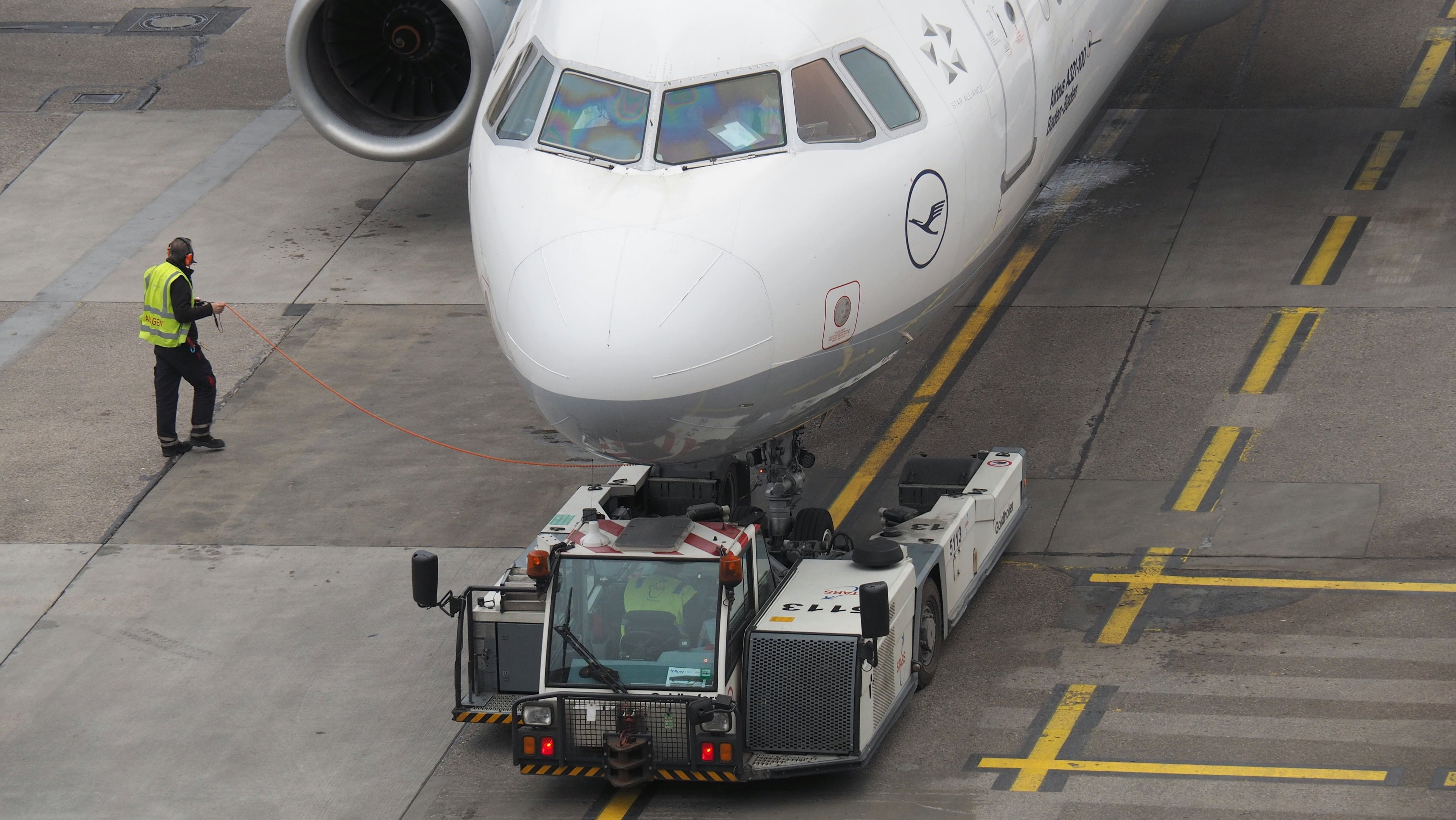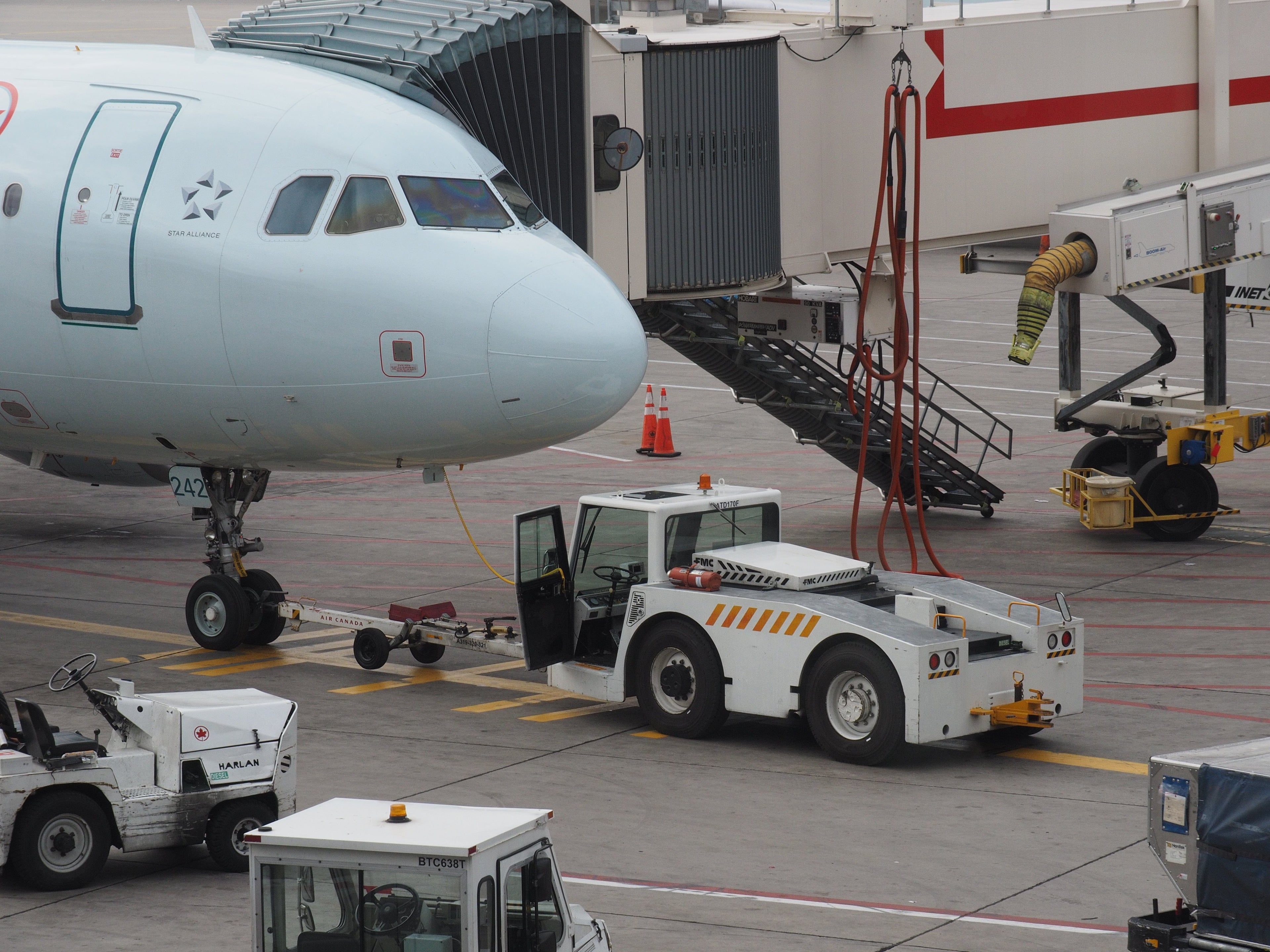 Once everyone's belted into their seats, and the bags and cargo are loaded, and all doors are closed, the aircraft tug does its work, pushing the plane back from the gate.