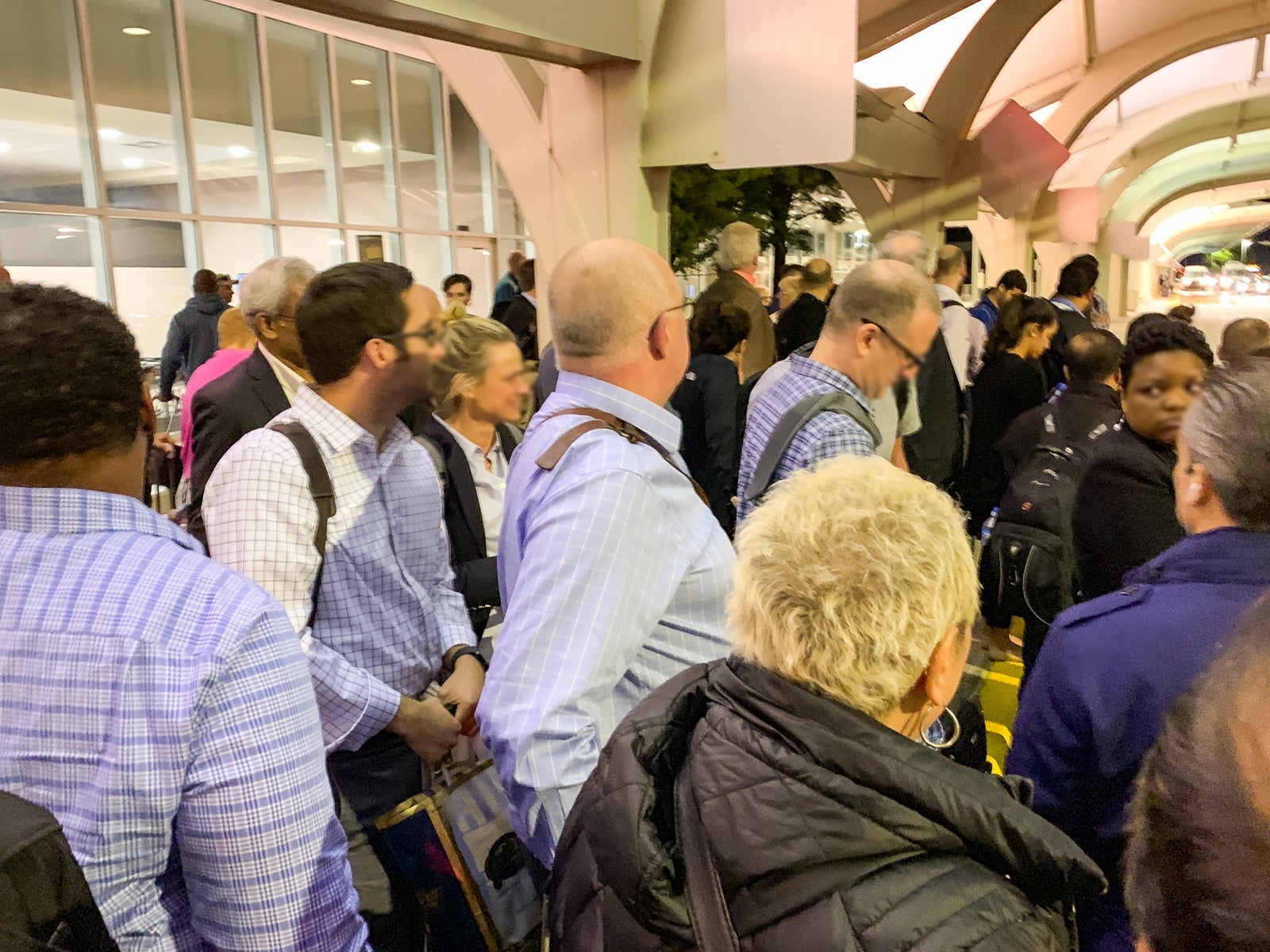 I took an Uber to our assigned hotel with two other women and beat the bus by a few minutes. We only had a 15-minute delay to check in at 1:15 a.m. However, some stranded passengers who took the bus and were at the end of the line were still checking in at 3:30 a.m.