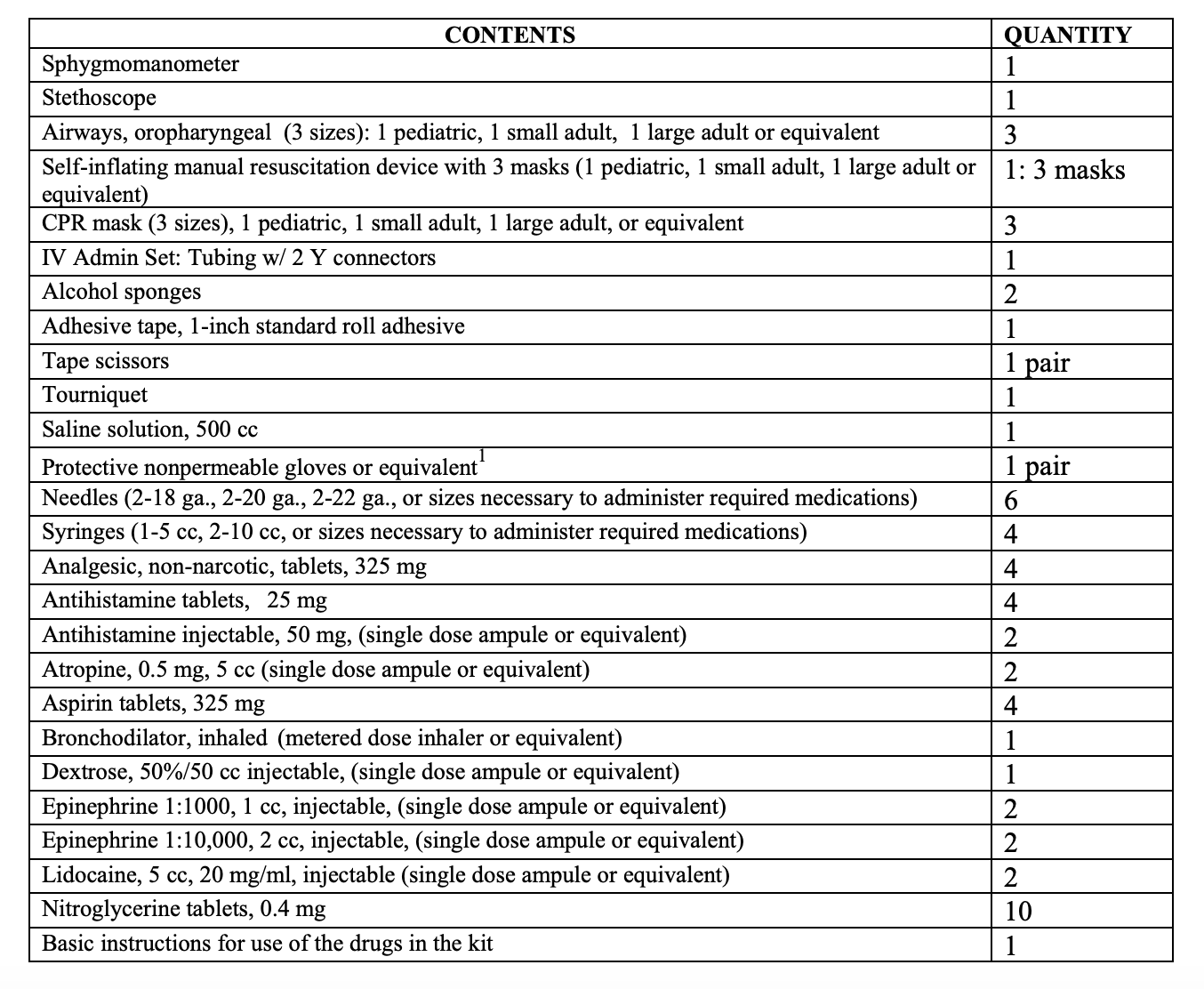 Here's what's required by the Federal Aviation Administration in the medical kit.