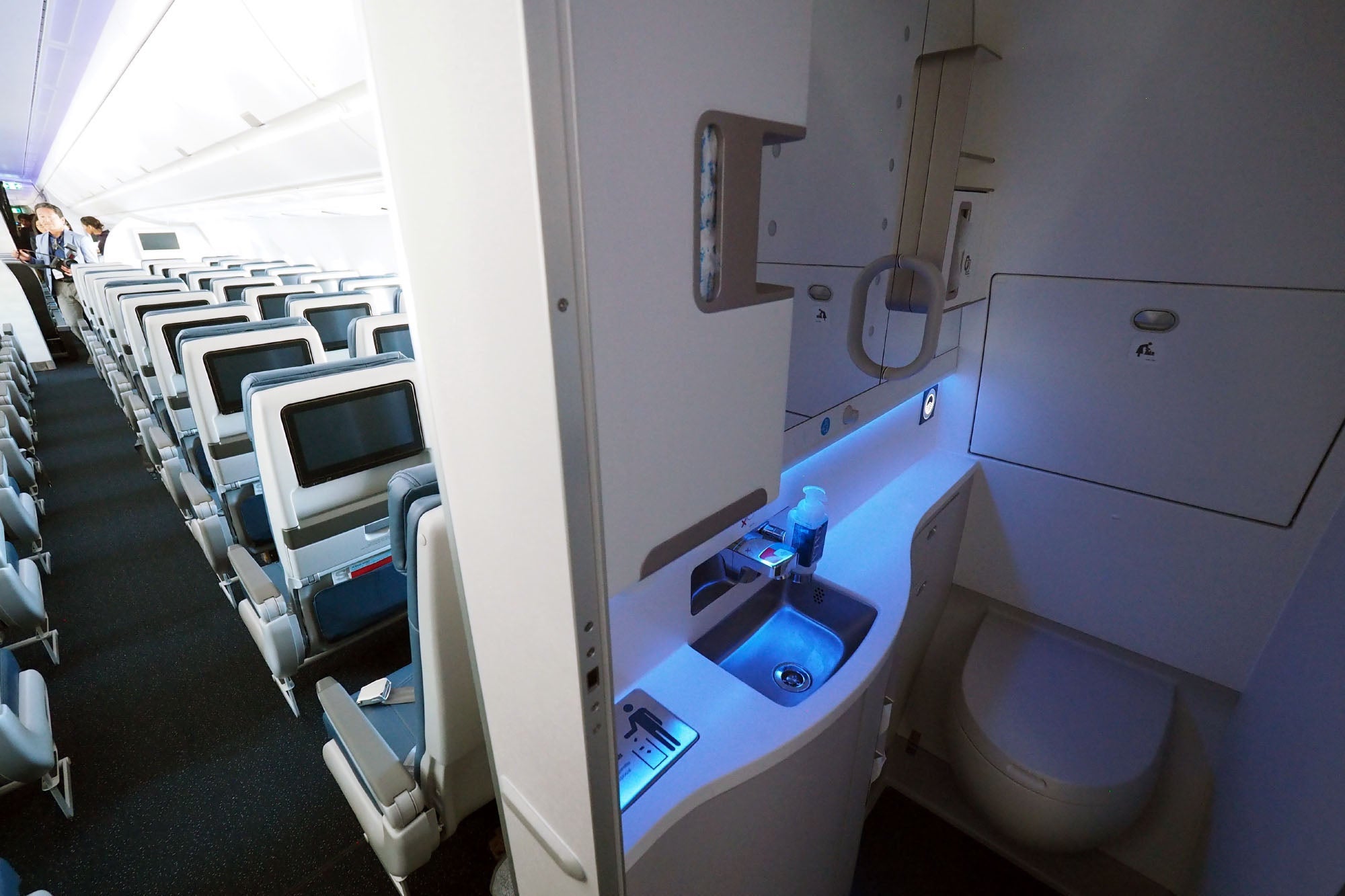 The lavatories, on the other hand, are incredibly compact. I didn't pull out my measuring tape in the lav, but it certainly felt like one of the narrowest spaces I've come across on any plane.