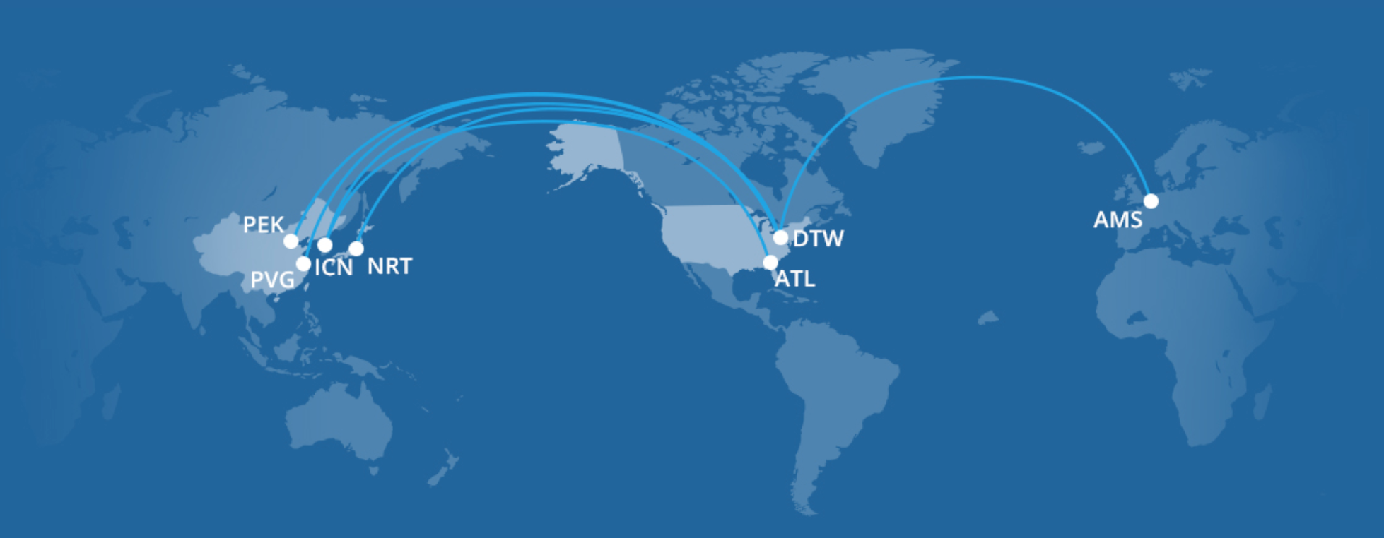 The plane launches on the Detroit (DTW)-Tokyo (NRT) route on October 30, 2017, and will soon fly to a handful of destinations within Asia, in addition to Amsterdam (AMS).