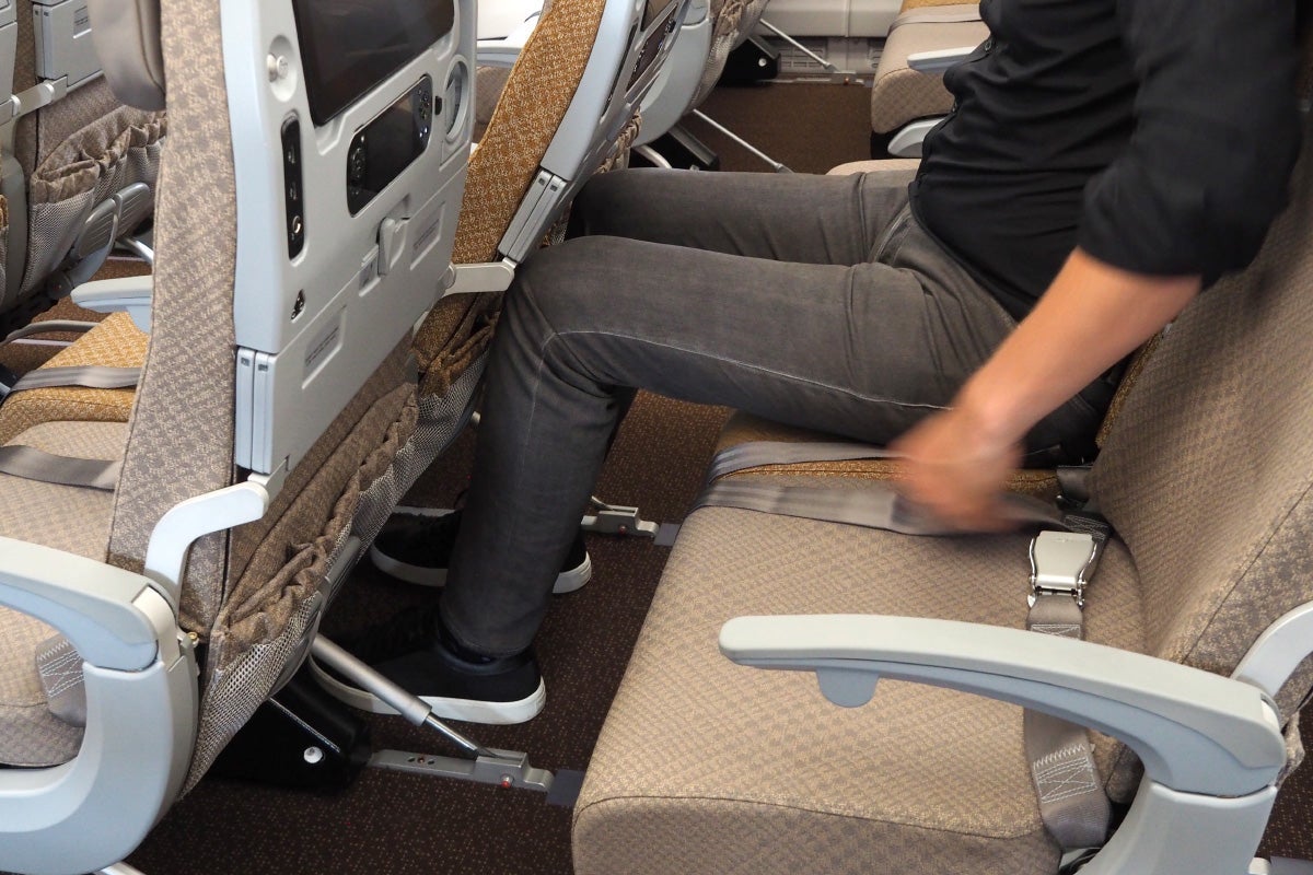 Economy seats are arranged in a 3-3-3 configuration, with the exception of row 47, which has seats in a 2-3-2 config (to leave room for the cabin's exit doors). Economy seats are 18 inches wide (standard on the A350) and have at least 32 inches of pitch. By comparison, Qatar Airways' A350 offers between 31 and 32 inches of pitch, and Finnair's A350 offers 31 inches of pitch in economy and 35 in Economy Comfort.