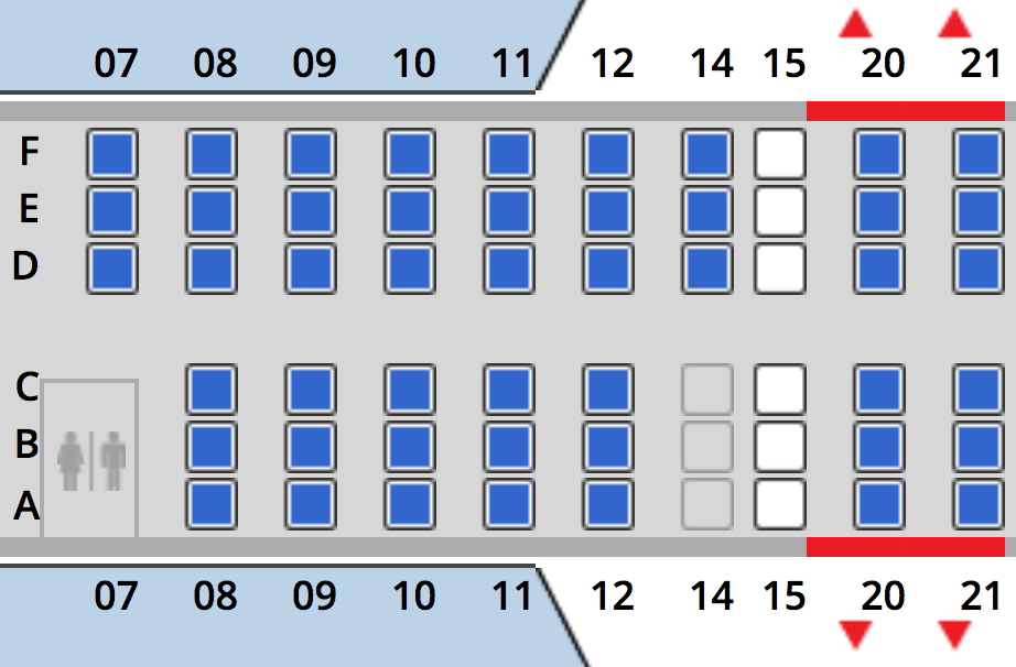 I'd also avoid Row 20, the second-to-last row of Economy Plus. These seats don't recline, since there's an emergency exit just behind. Notably, the regular coach seats just in front don't recline either, though, so you don't have to worry about those passengers eating into your substantial legroom.
