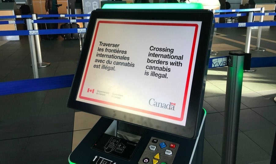 Consumption of cannabis is only permitted in marked off smoking-zones outside of the airport terminals. Officials have installed signs and guides on how to properly abide by these new laws as well. They warn against crossing international borders in possession of cannabis (it's illegal to do so,) how laws vary from province to province and to know the laws wherever you travel.