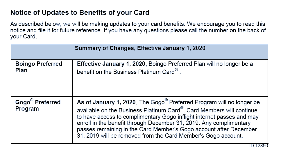 American Express is ending their relationships with both Gogo® and Boingo effective Jan. 1, 2020.