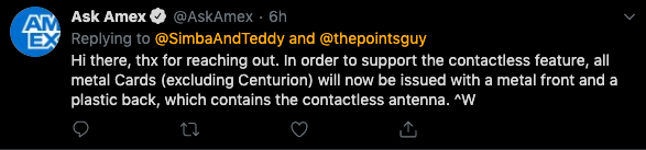 Recently another TPG reader tweeted at Amex asking about the change, to which Amex responded: