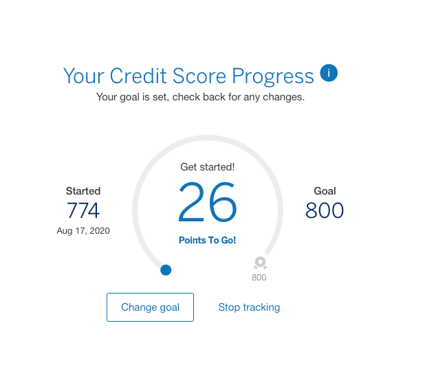 Hit "Get Started," to set your credit score goals. I set mine to 800.