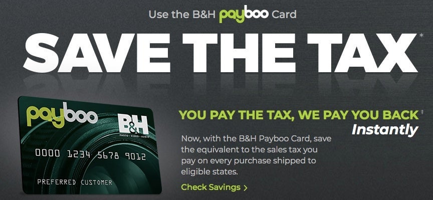 B&H is primarily known for selling photo and video equipment, but it also sells plenty of other electronics. I'm a musician, and the retailer's selection of recording gear and microphones means I could save quite a bit of money on my music-related purchases if I decided to open the new B&H Payboo Credit Card. Payboo? Not exactly the greatest name, but nonetheless, it seemed like a great offer. "You pay the tax," the website reads, "and we pay you back instantly."