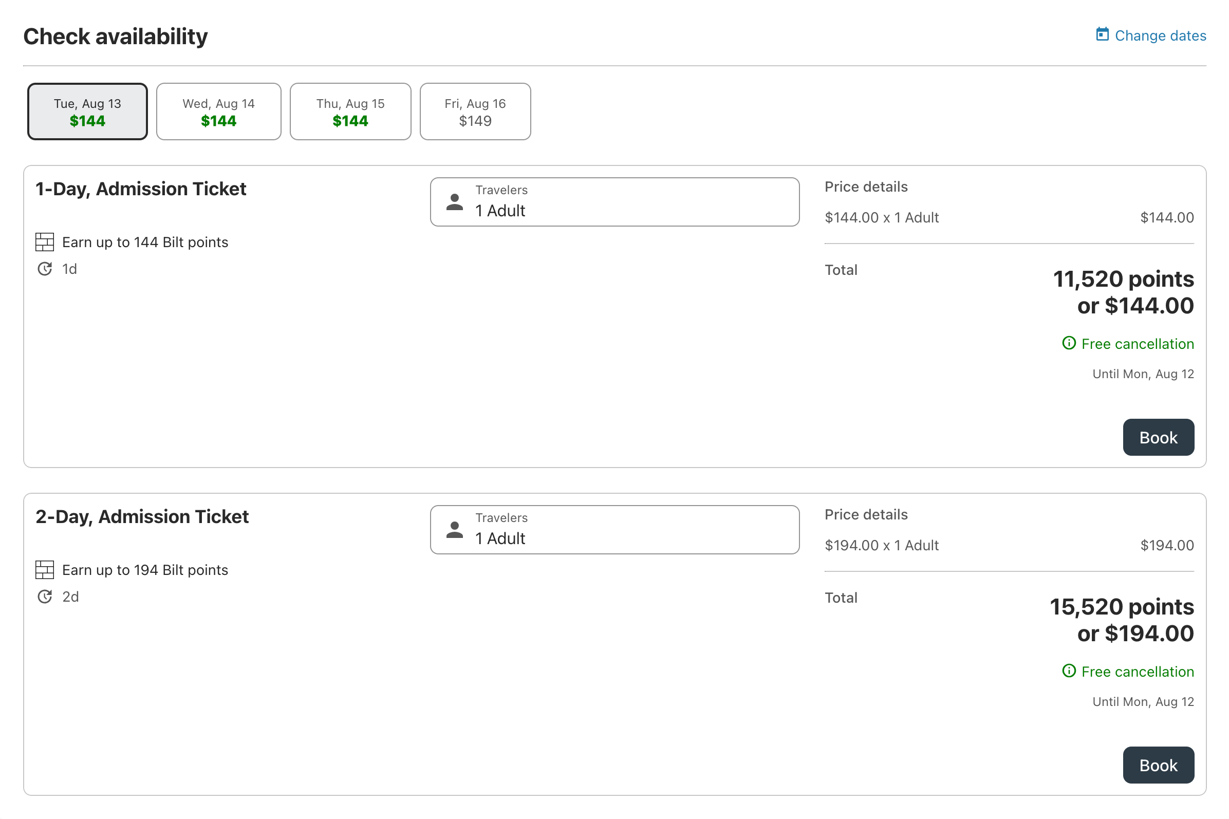 In June 2022, Bilt launched its travel portal, which allows Bilt members to earn and redeem points for flights, hotels and rental cars. You can also use the Bilt travel portal to redeem points for activities, including theme park tickets.