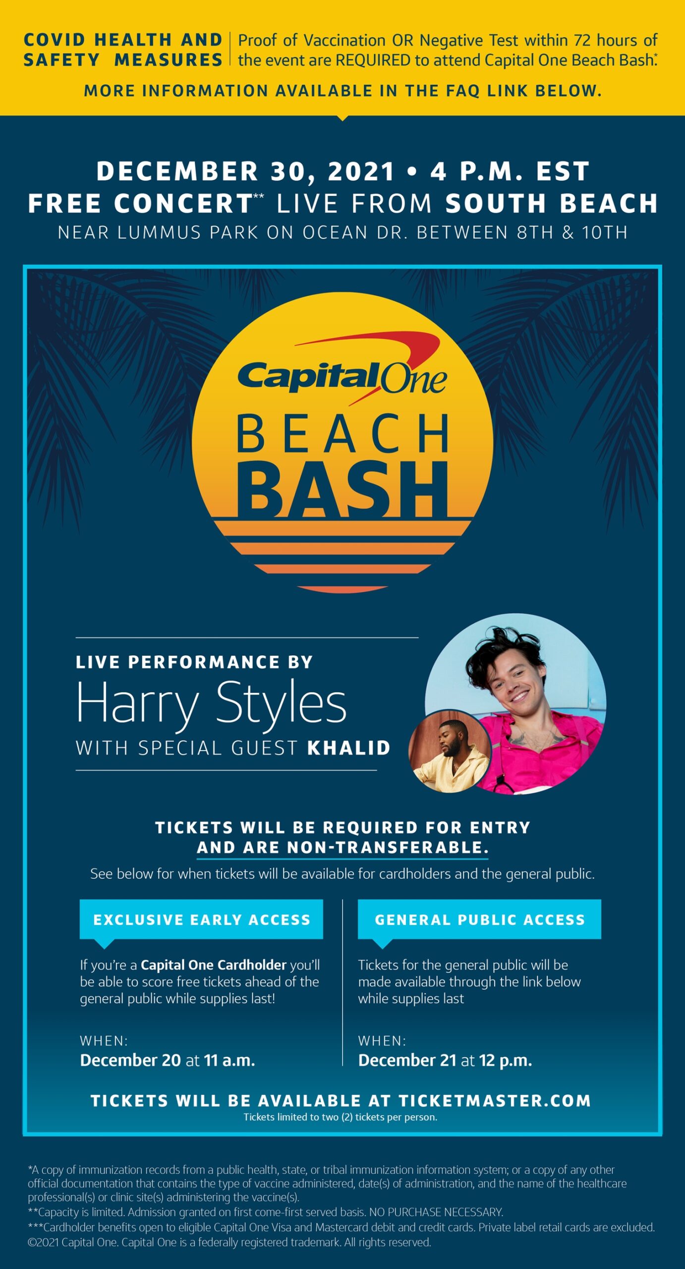 On Thursday, Dec. 30 — the day before the Capital One Orange Bowl game — the issuer is hosting a free concert with Harry Styles and Khalid at Lummus Park in South Beach, Miami.