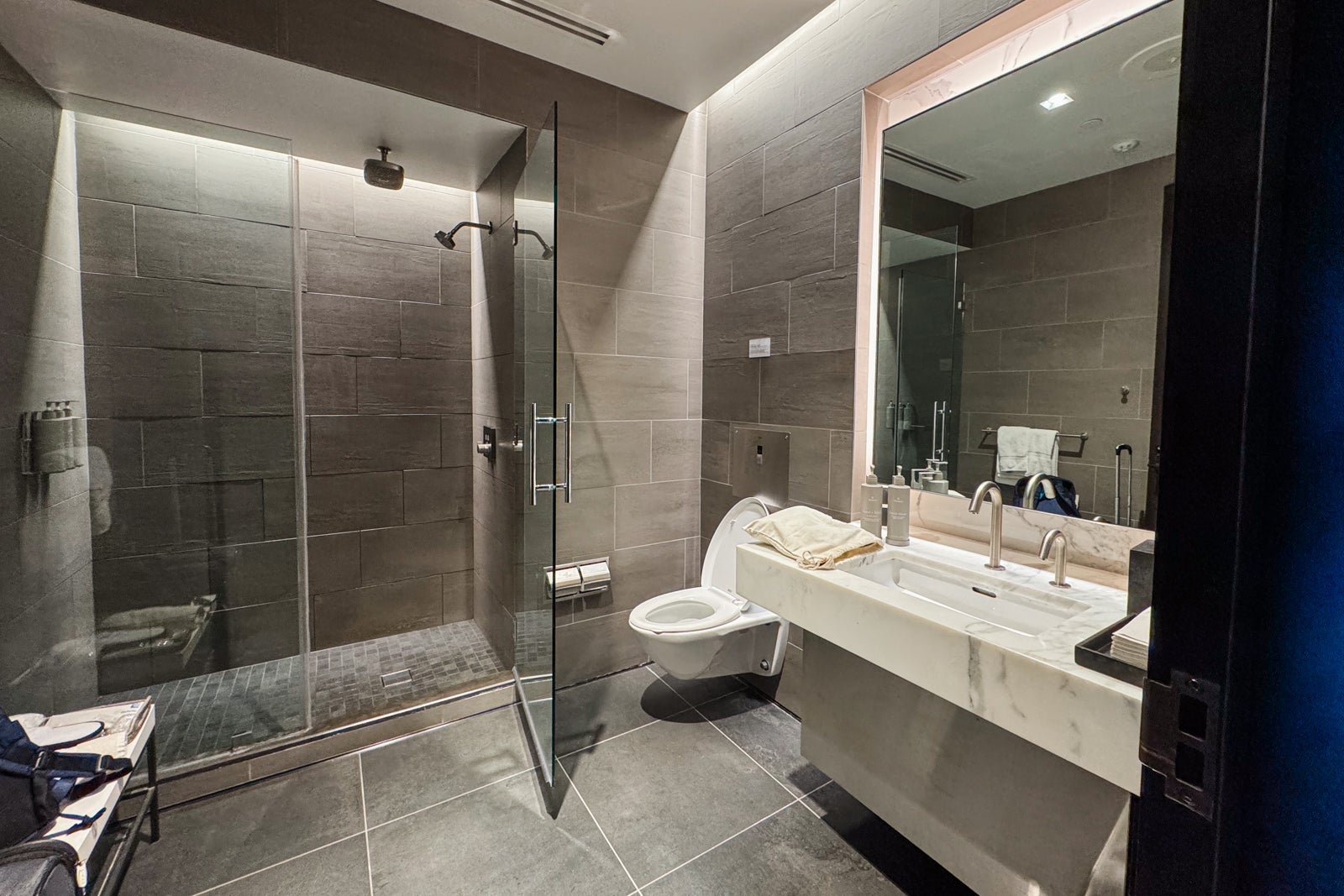 Time was getting short, so I went back downstairs for a refreshing shower in one of the lounge's shower suites, which are currently stocked with Therabody hair care and skin care products, and then it was time to board my flight.