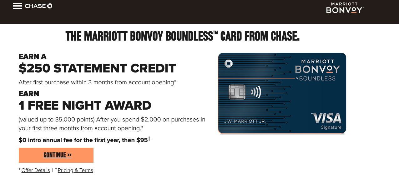 Unfortunately, I got the dreaded "pending" notice. I figured I'd be approved eventually, so I went ahead and also applied for the Chase Freedom card (No longer open to new applicants). This time, I got a blunt "can't approve at this time," message. I then thought I might as well press my luck and, soon after, I applied for the Marriott Bonvoy Boundless Credit Card via a hotel booking promotion.