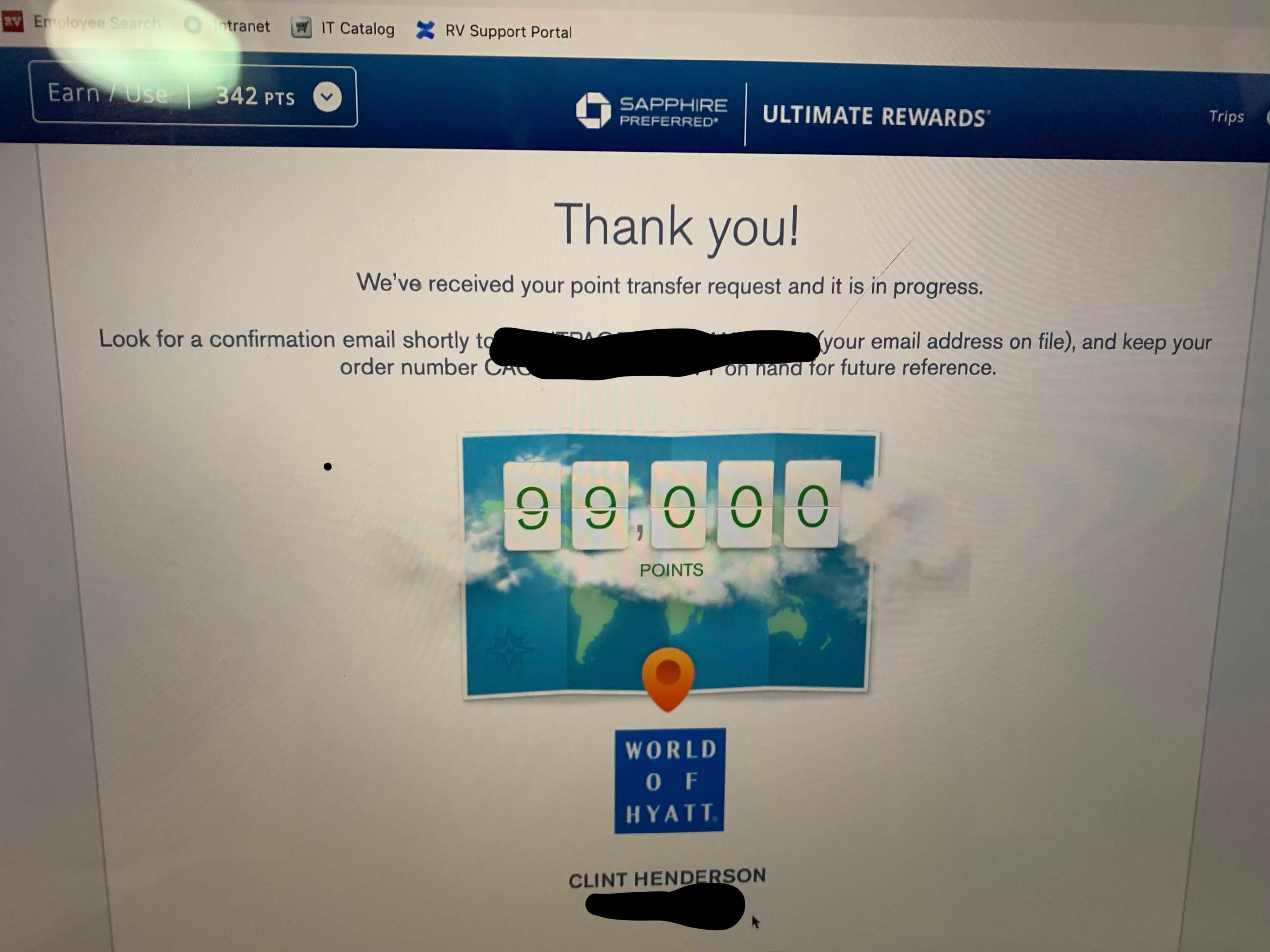 Oh, and those 99,000 Chase Ultimate Rewards Points I had transferred to Hyatt? They never did show up in my Hyatt account, but they are safely back in my Chase account, so all is right in the universe.