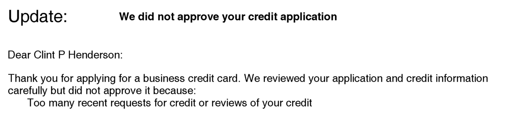 At this point, I wasn't really that worried, figuring I'd get approved for at least one or two of the cards. I wasn't prepared for what happened next.