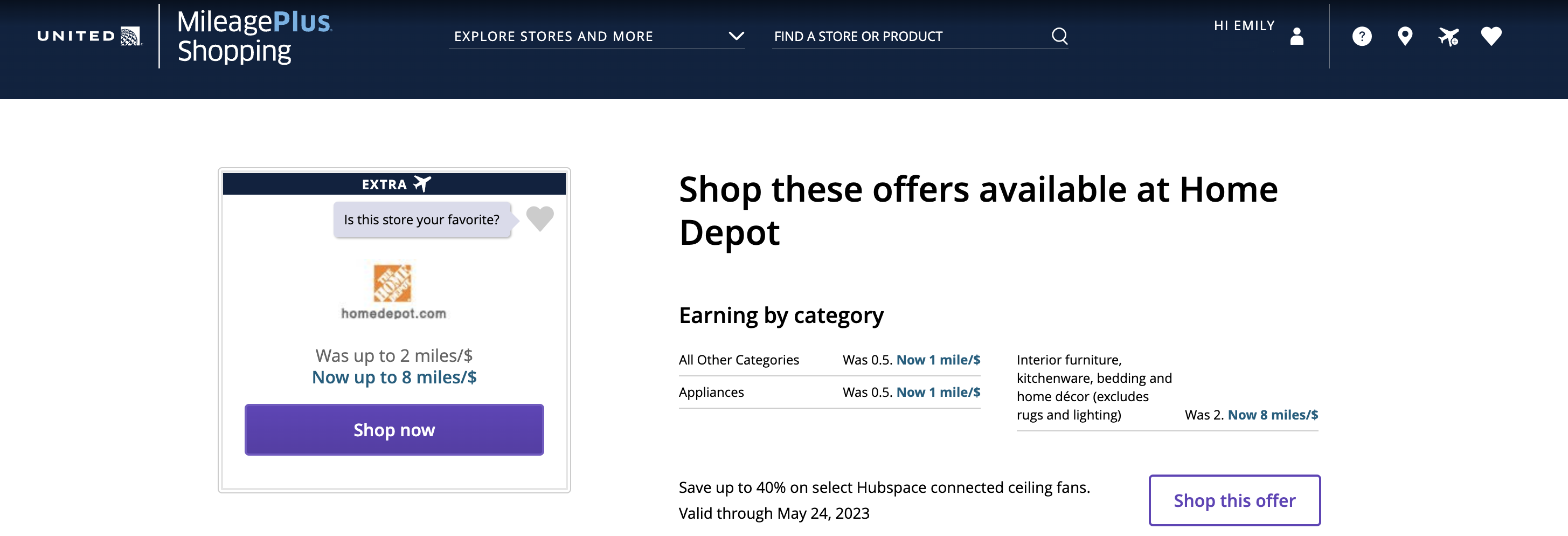 Shopping portals reward you with bonus points when you click through the portal before making a purchase with a specific merchant. For example, the United shopping portal might be offering 1 mile per dollar at Home Depot. So if you have a Home Depot Amex Offer, you can click through the United portal first, pay with your Amex and earn bonus United miles and Membership Rewards points on your purchase.