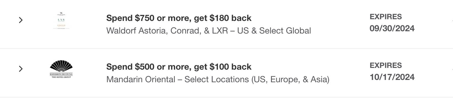 From a traveler's perspective, Amex Offers are frequently a good fit. Hotel offers are relatively common and often span multiple brands. For instance, here's one that can save you $180 on select luxury Hilton properties or $100 at select Mandarin Oriental properties: