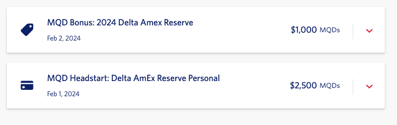 Each year, Delta Amex cardholders earn a 2,500 MQD Headstart. Delta also issued a one-time 1,000 MQD bonus as a result of the changes to the SkyMiles program.