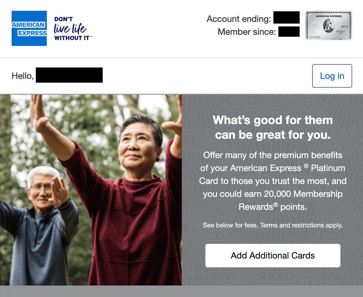 Even better, select cardholders may be targeted to earn 20,000 bonus Membership Rewards points by adding an authorized user to their Platinum Card. Since we value each Amex point at 2 cents each, these points are worth $400 — a win-win for you and your mom.
