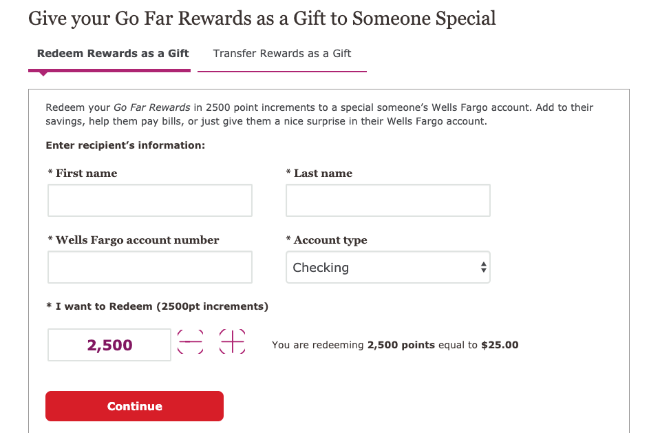 These transfers work from any Wells Fargo Go Far Rewards credit card to any other Wells Fargo Go Far Rewards-earning credit card, so if you have any second person you trust and are willing to split rewards with -- such as a spouse or close friend or family member -- you can benefit from the above process.