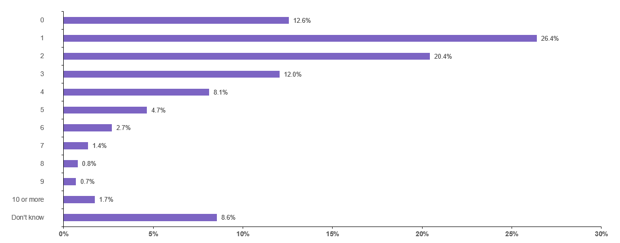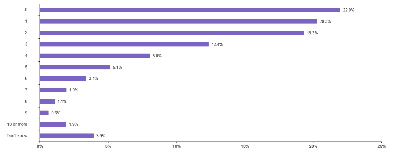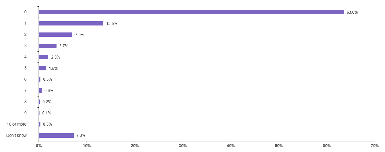 Considering that there are some excellent travel rewards cards with annual fees under $300 — such as the Chase Sapphire Preferred Card, American Express® Gold Card and the American Express® Green Card — it's not that surprising to learn that 63.6% of U.S. adults who have at least one credit card don't have a premium credit card with an annual fee of $300 of more. Perhaps more surprising is that 7.3% of U.S. adults who have at least one credit card don't know how many cards they have with annual fees of $300 or higher.