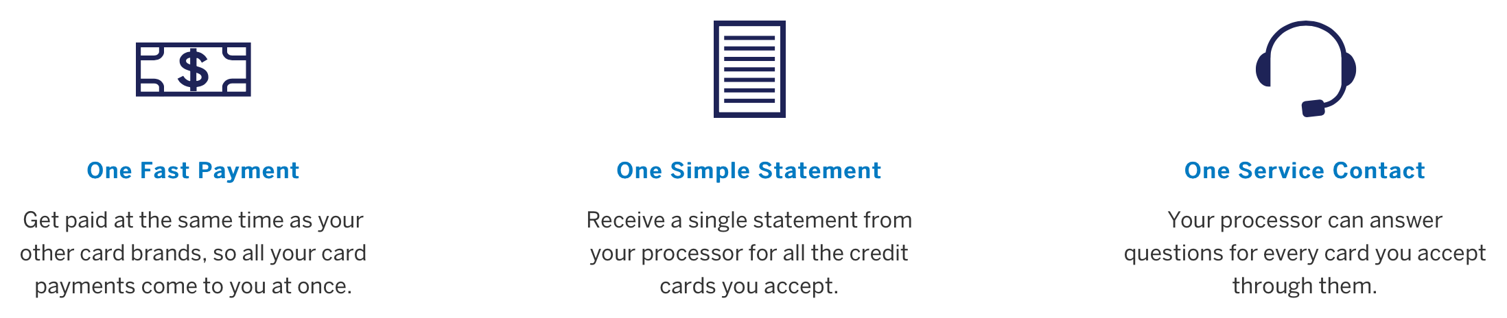 Through the program, Amex gives payment processors wholesale rates and lets them set their own merchant fees depending on the transactions, the same way they do with other networks. Accepting Amex through OptBlue means you, the business owner, can find the best rates for your company, and combine your statements and payments across all cards you're accepting into one.