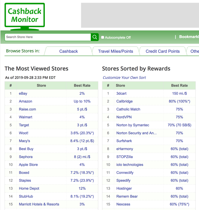 Starting your shopping through an online shopping portal can supercharge your miles and points earning. (Image courtesy of Cashback Monitor)