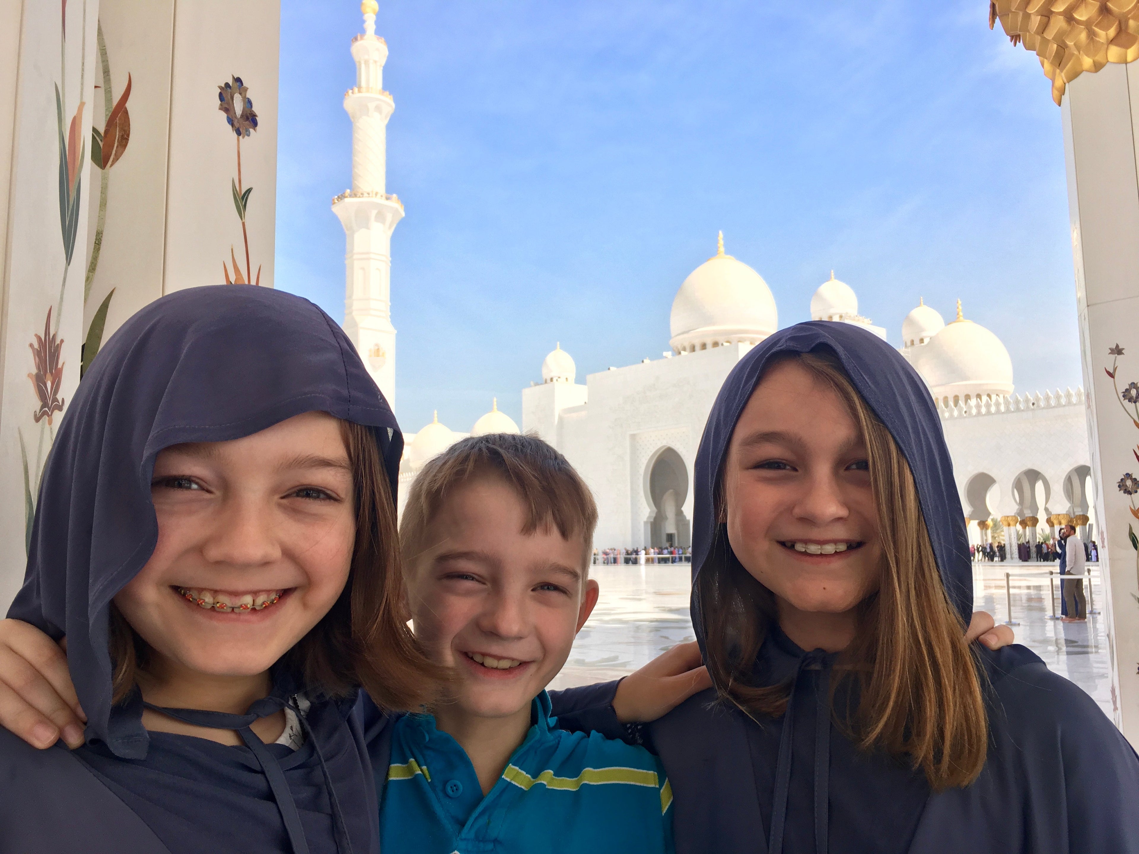 The kids at Sheikh Zayed Grand Mosque in Abu Dhabi.