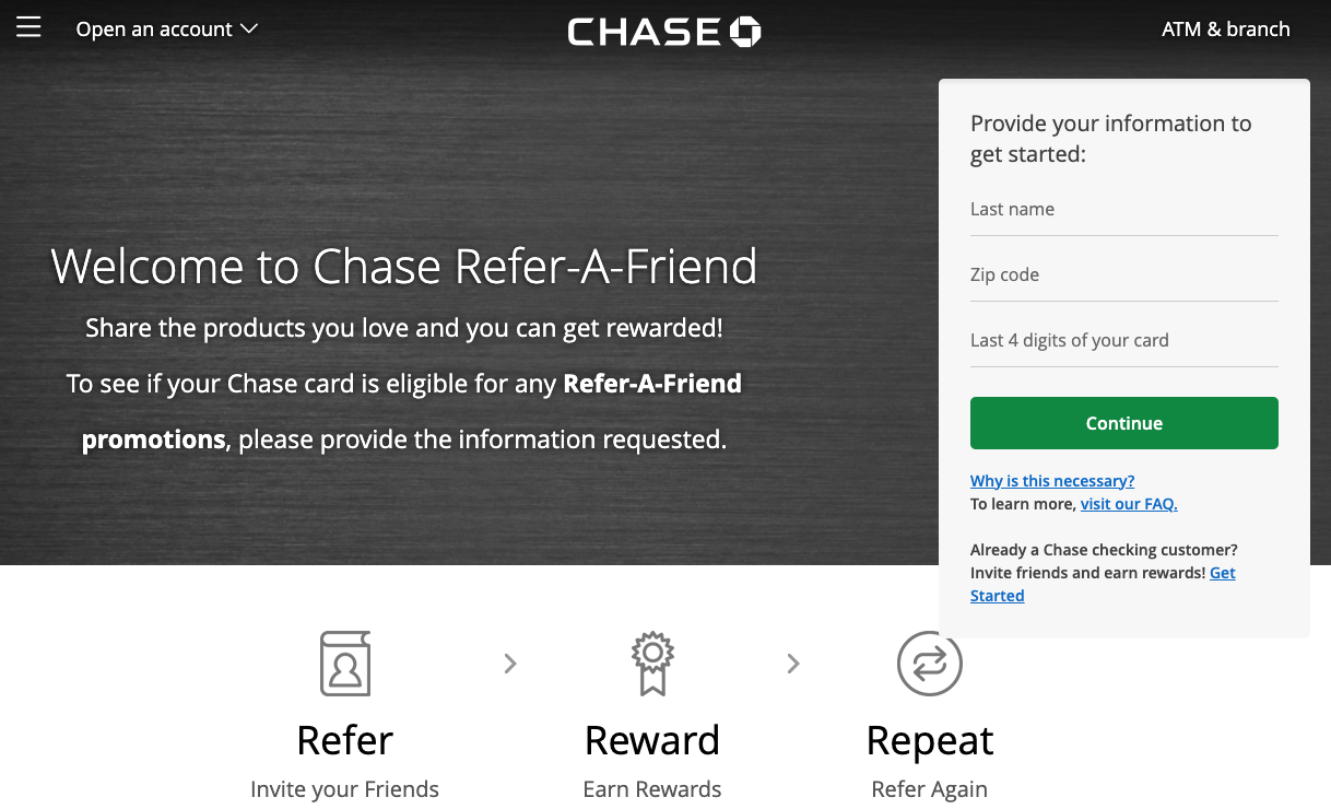 Head to the Chase refer-a-friend page and enter your last name, ZIP code and the last four digits of your credit card number to get your referral link.