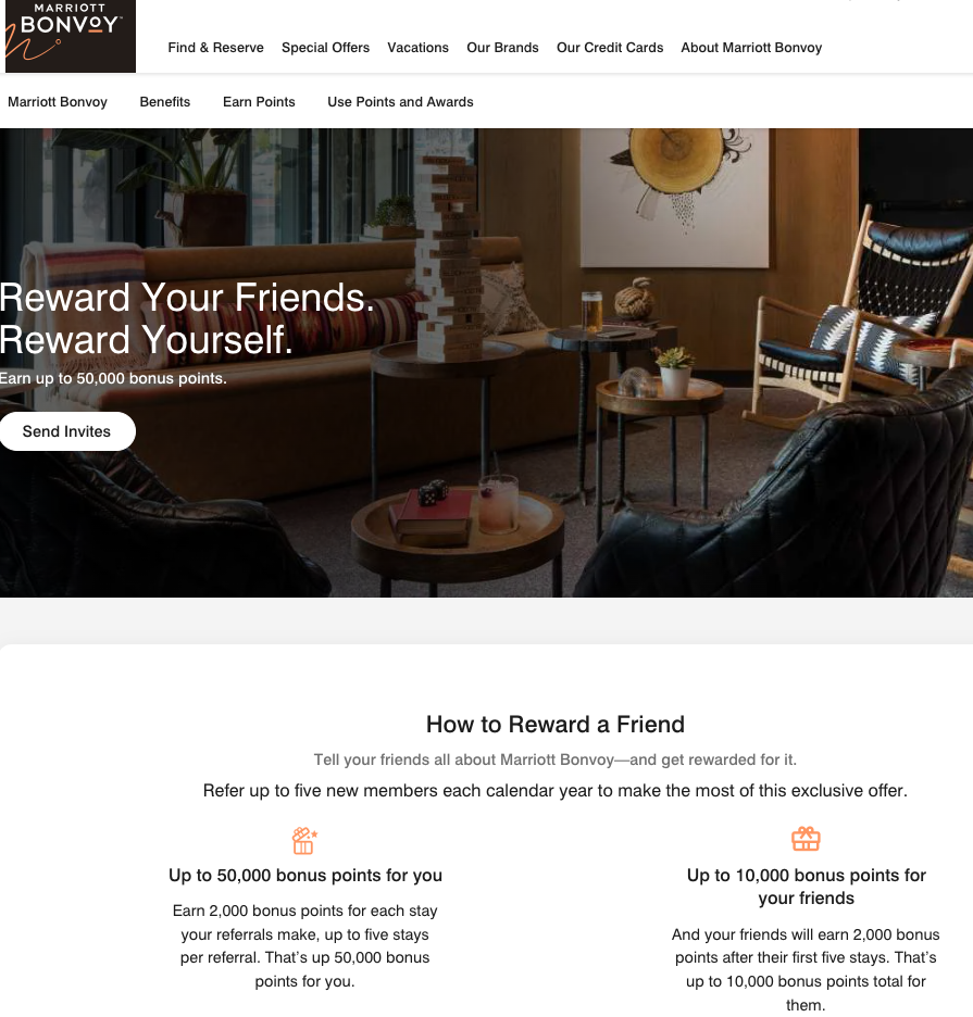 Find the Marriott refer-a-friend page and click "Send Invites" in the graphic at the top of the page.
