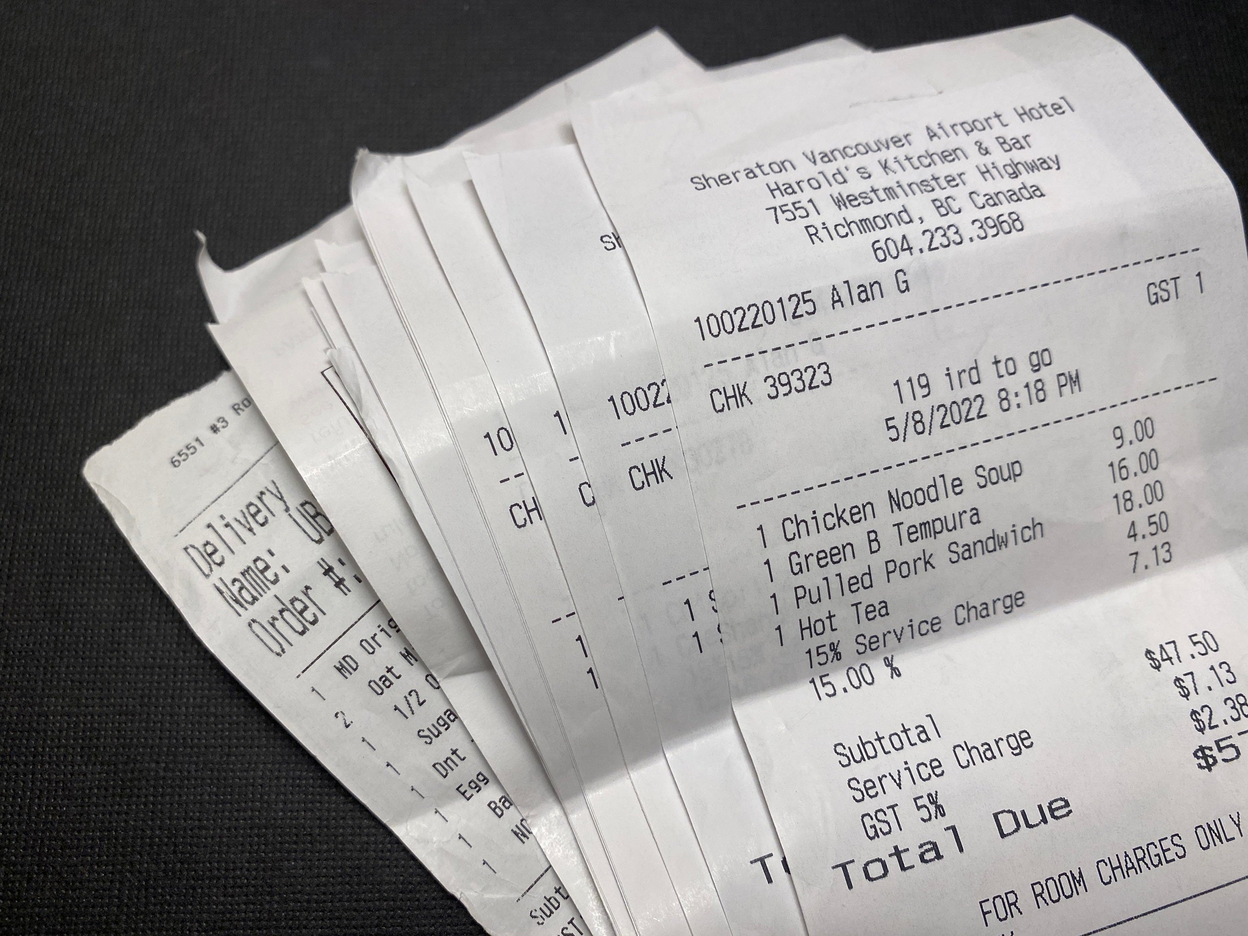 Get printed receipts for any expenses you incur, and make sure you save them. In fact, you should probably take a picture with your phone as soon as you receive them — that way, you have a record of the purchases, even if the physical copies get lost. If you don't get a receipt, you can't submit for reimbursement with your credit card issuer.