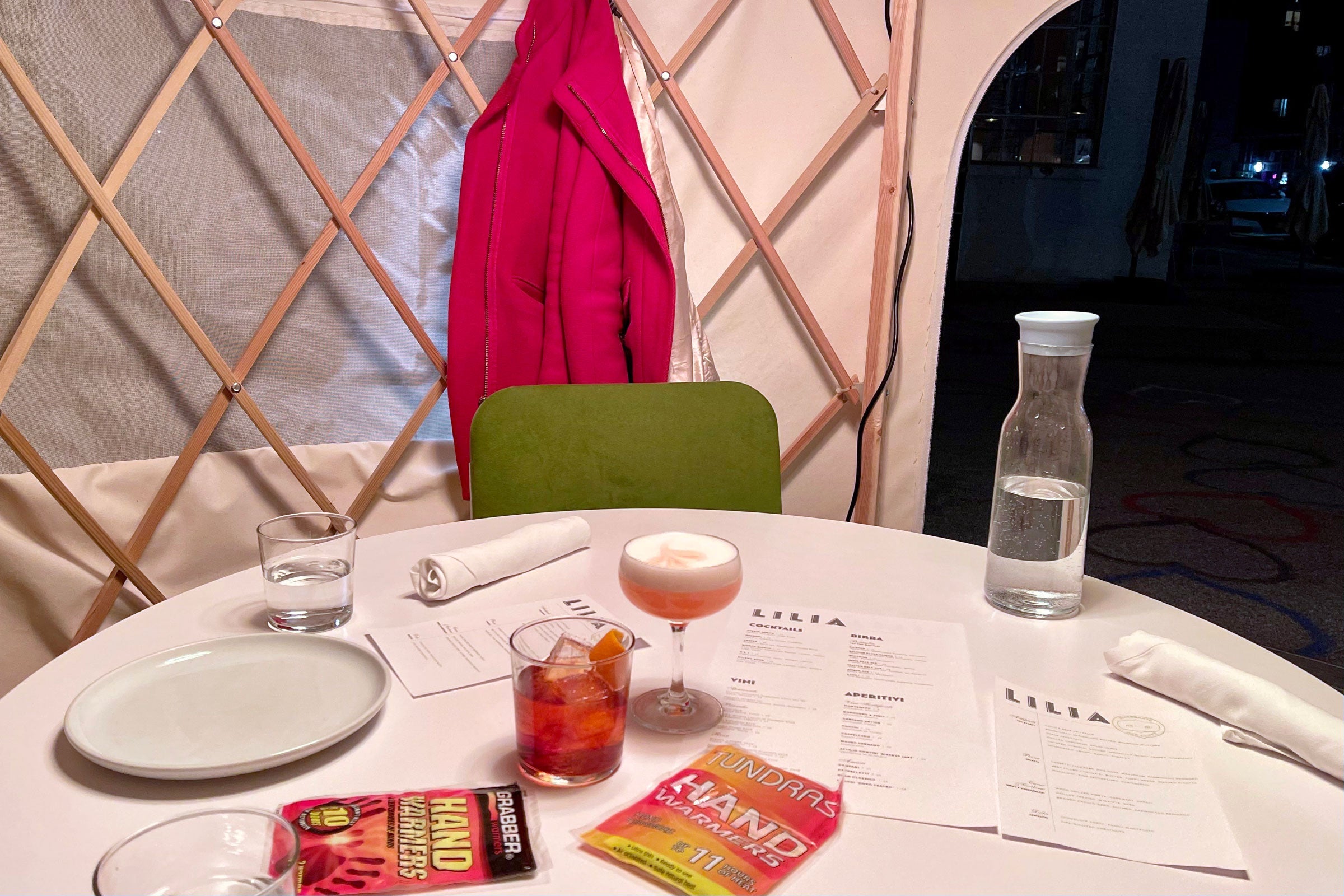While some restaurants may offer more yurts, Lilia has just 10, with four seats each. Reservations for two people are incredibly difficult to come by, but there's generally decent availability for groups of four. Still, if you're hoping to lock in a specific date and time, I'd book as early as you can.