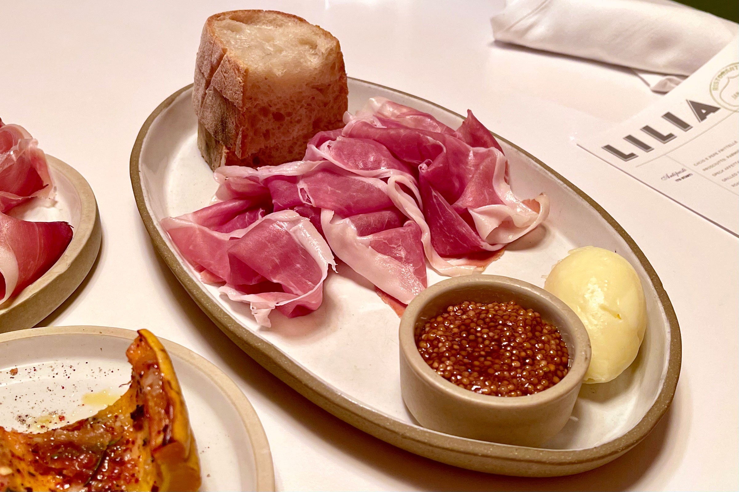 Next was the prosciutto — always a treat, with a perfect mix of fat. The bread was delicious as well, as was the balsamic mustard. I prefer my butter with a bit more salt, but there wasn't any on the table. I'm sure I could have asked for some, but I was fine to skip it, given how much food was to come.