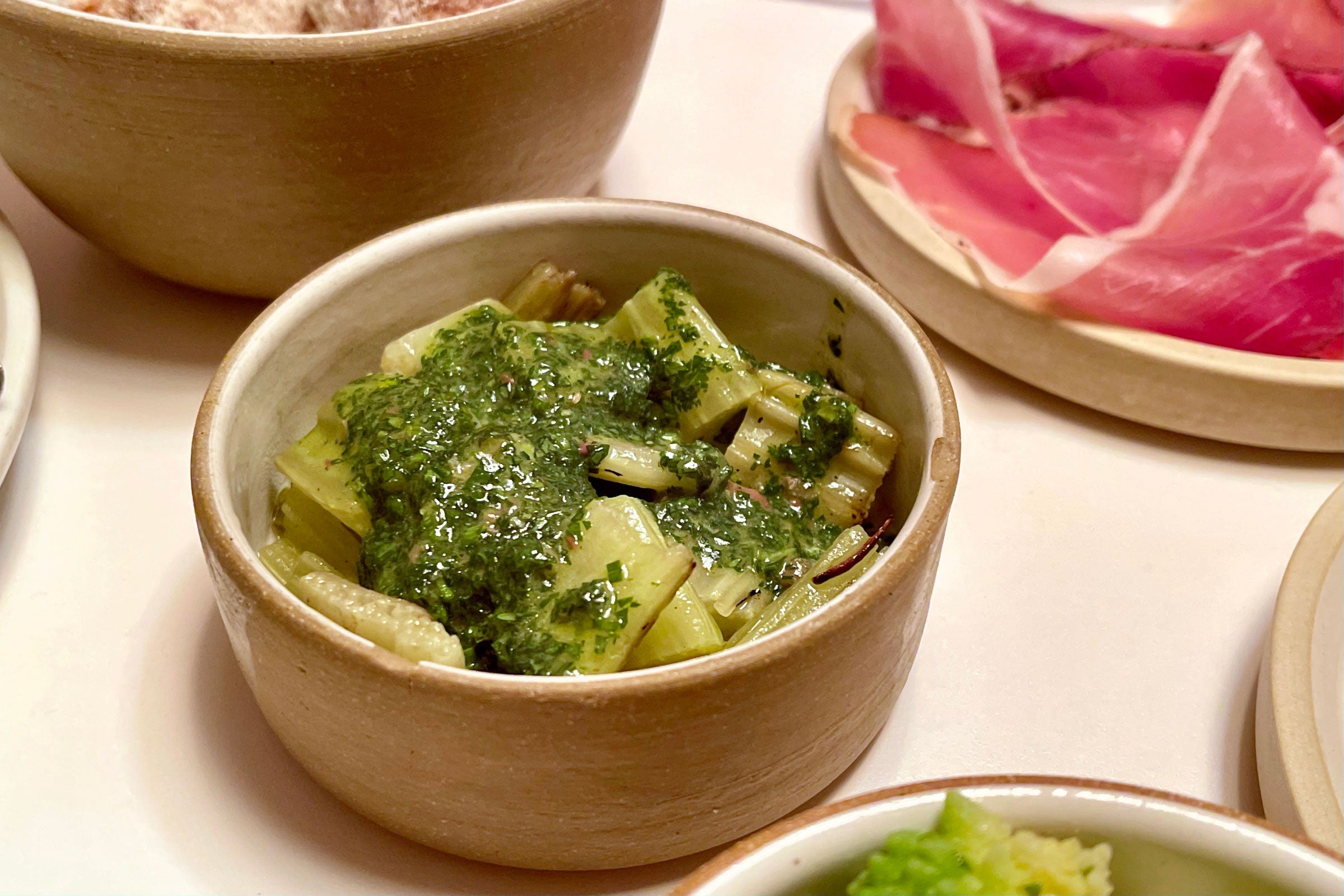 The grilled cardoons, which the waiter described as having the flavor of artichoke with the appearance of celery, added some variety, though, personally, I prefer the taste of artichoke to this dish.