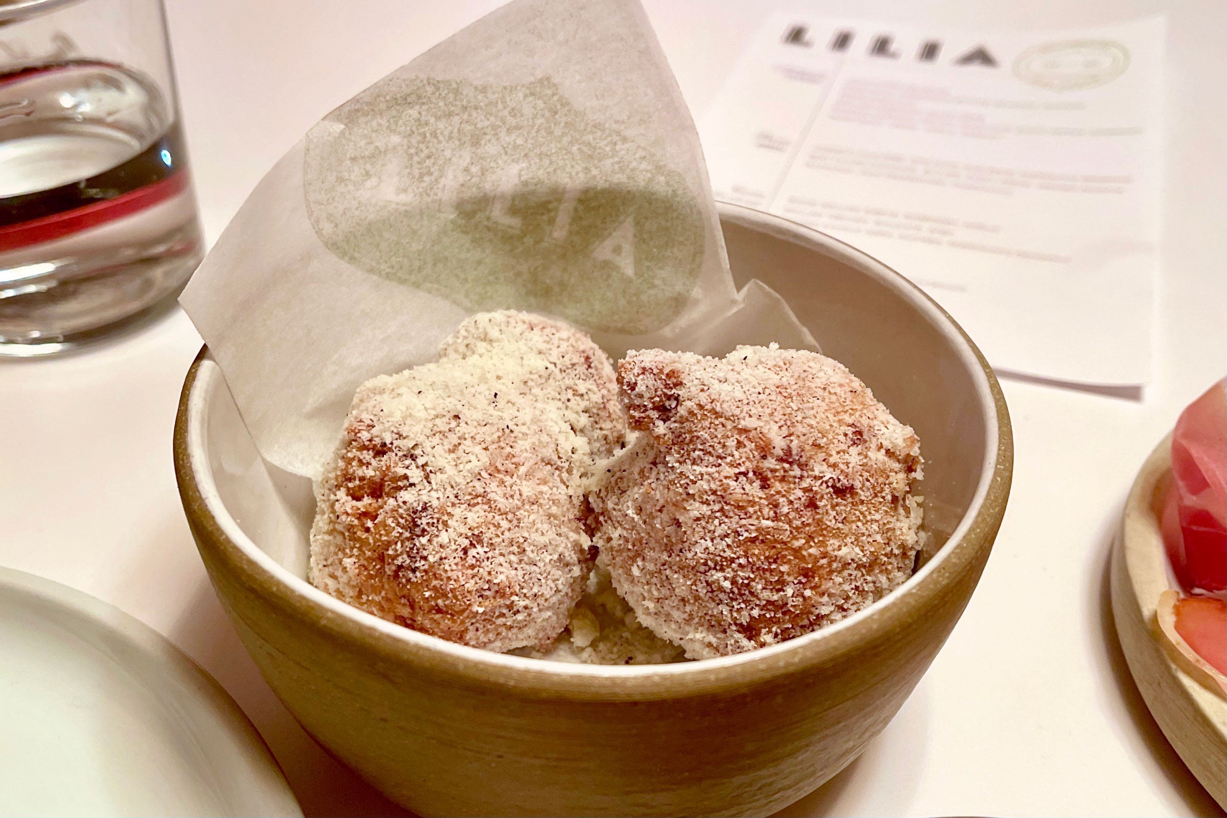 The first dish was Lilia's take on cacio e pepe, a Roman dish of spaghetti, black pepper and grated cheese. The Cacio e Pepe Frittelle were pillow-soft — deep-fried, but not greasy, and packed with flavor. I could have eaten an entire bowl, but one each was more than enough for a sufficient taste.