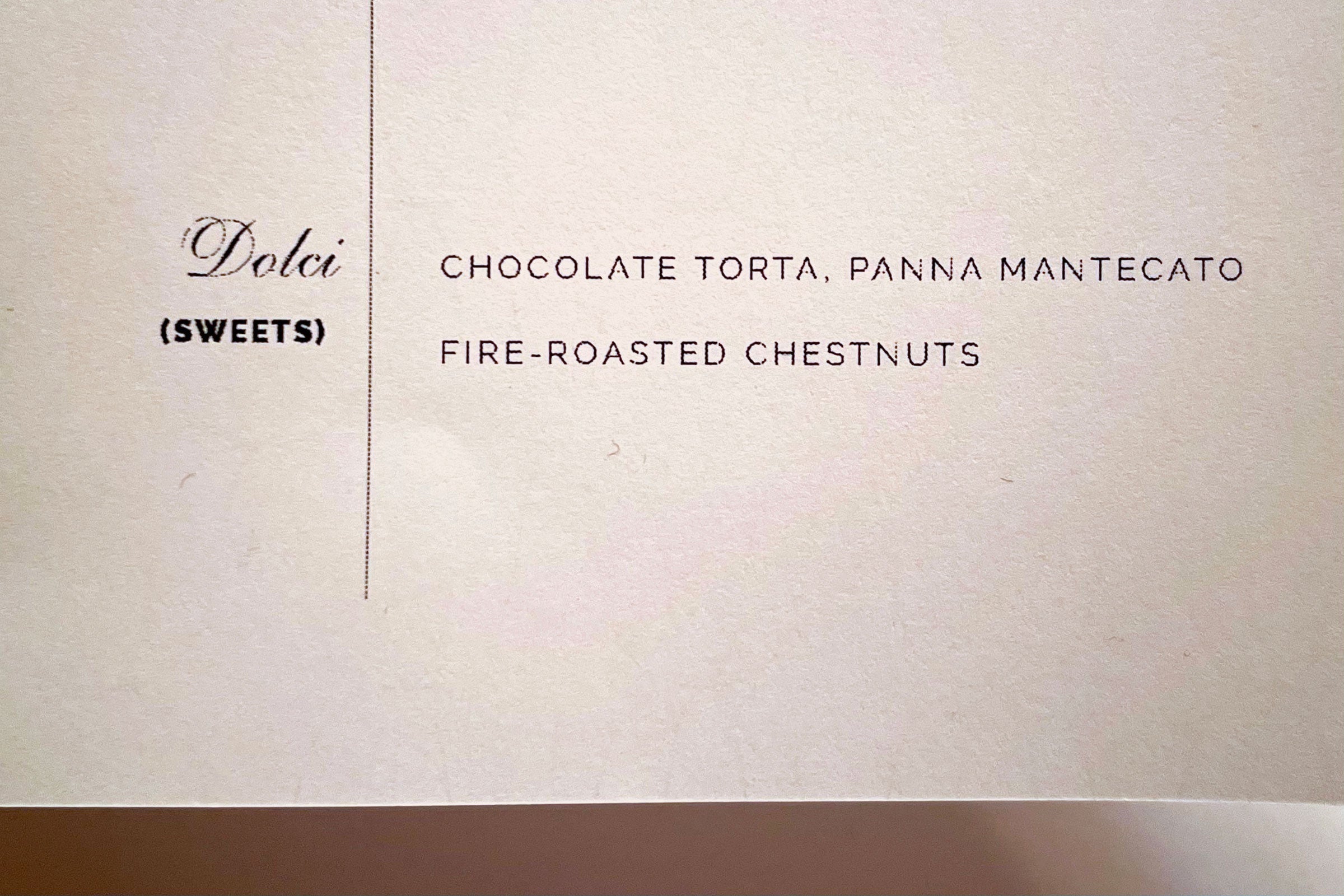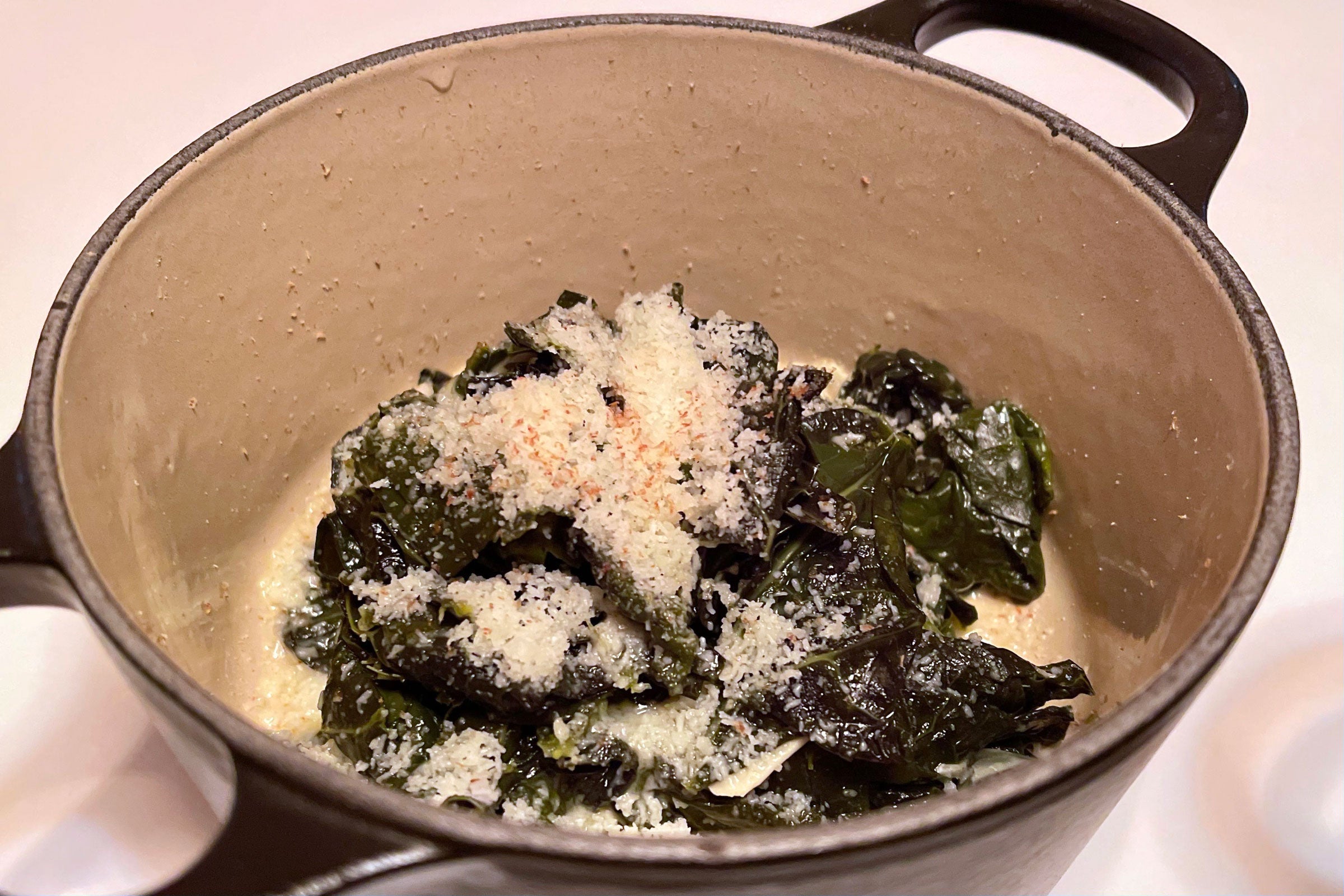 The main course was also served with cavolo nero, or Tuscan kale, served with nutmeg and Parmigiano Reggiano — a very pleasant dish.