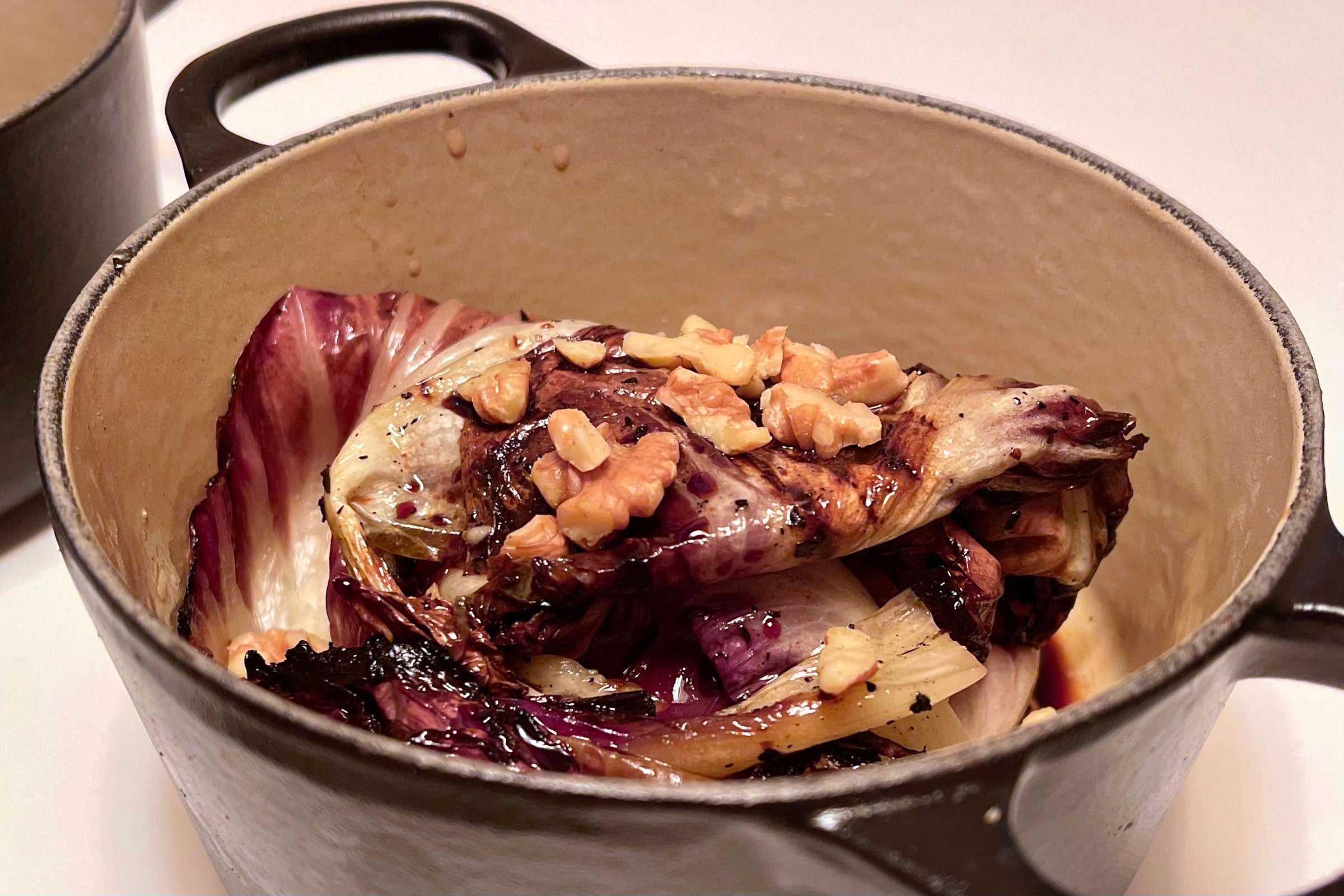 Two sides were included, too — first, grilled treviso, a type of radicchio, in this case served with walnuts. It tasted a bit sweet, with very good flavor, overall.