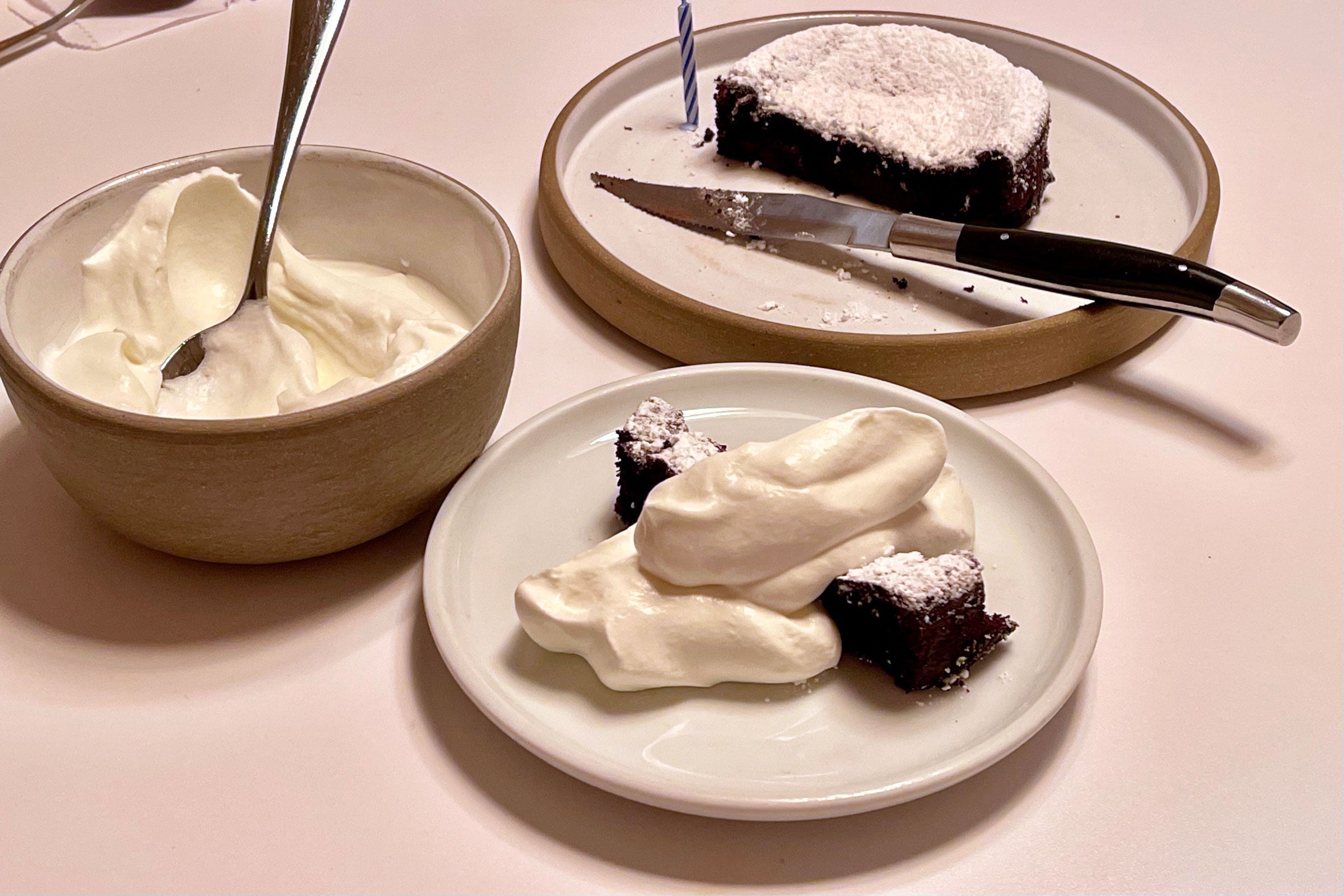 The chocolate torta was cooked perfectly, with a nice flavor — not too sweet. I also loved being able to dollop on tons of fresh whipped cream. Yum!