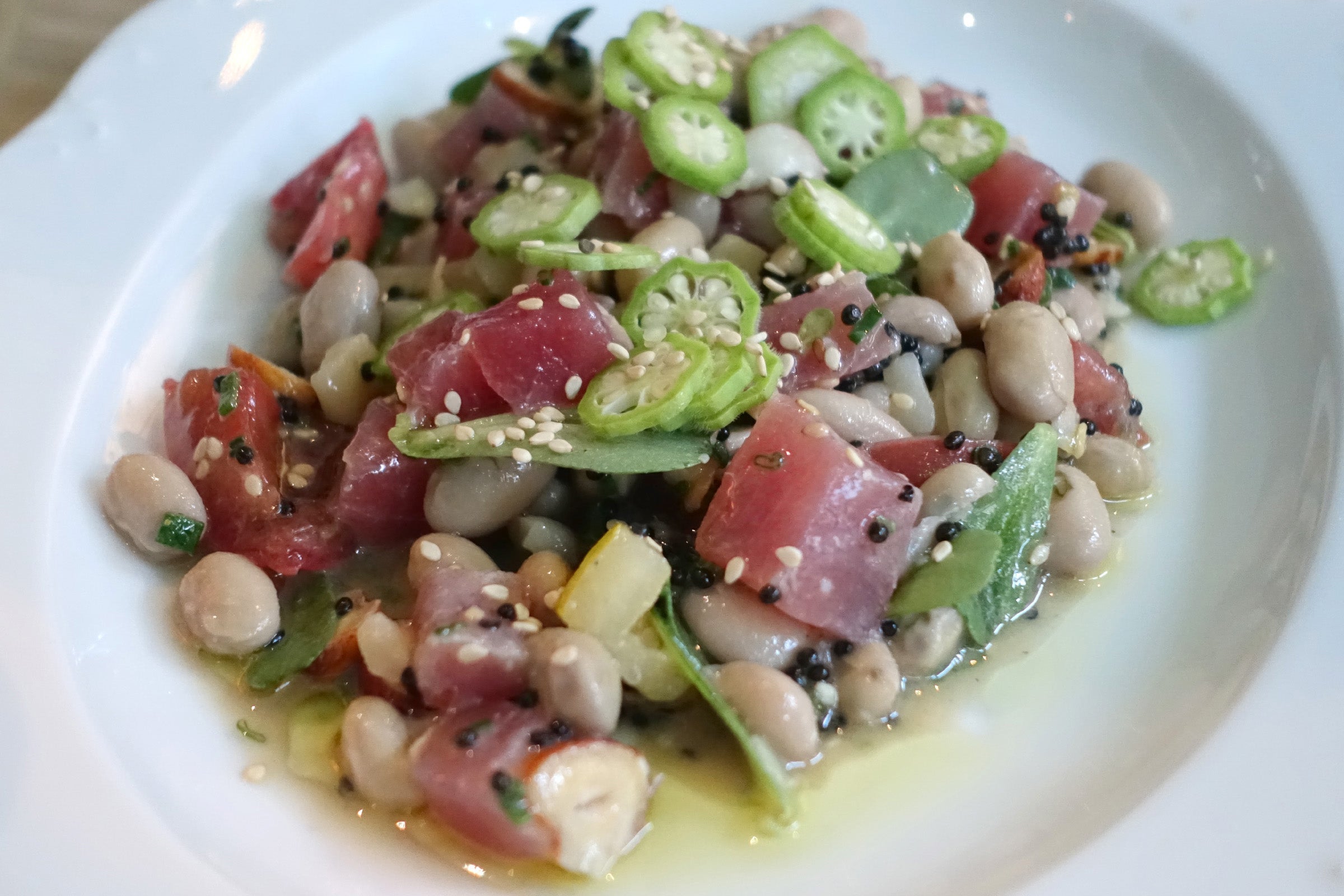 Shortly after arriving, we were presented with one of my favorite dishes of all — sushi-grade tuna with beans and okra. We had five courses (some with multiple dishes each), but this one wasn't even on the menu. Bonus tuna!