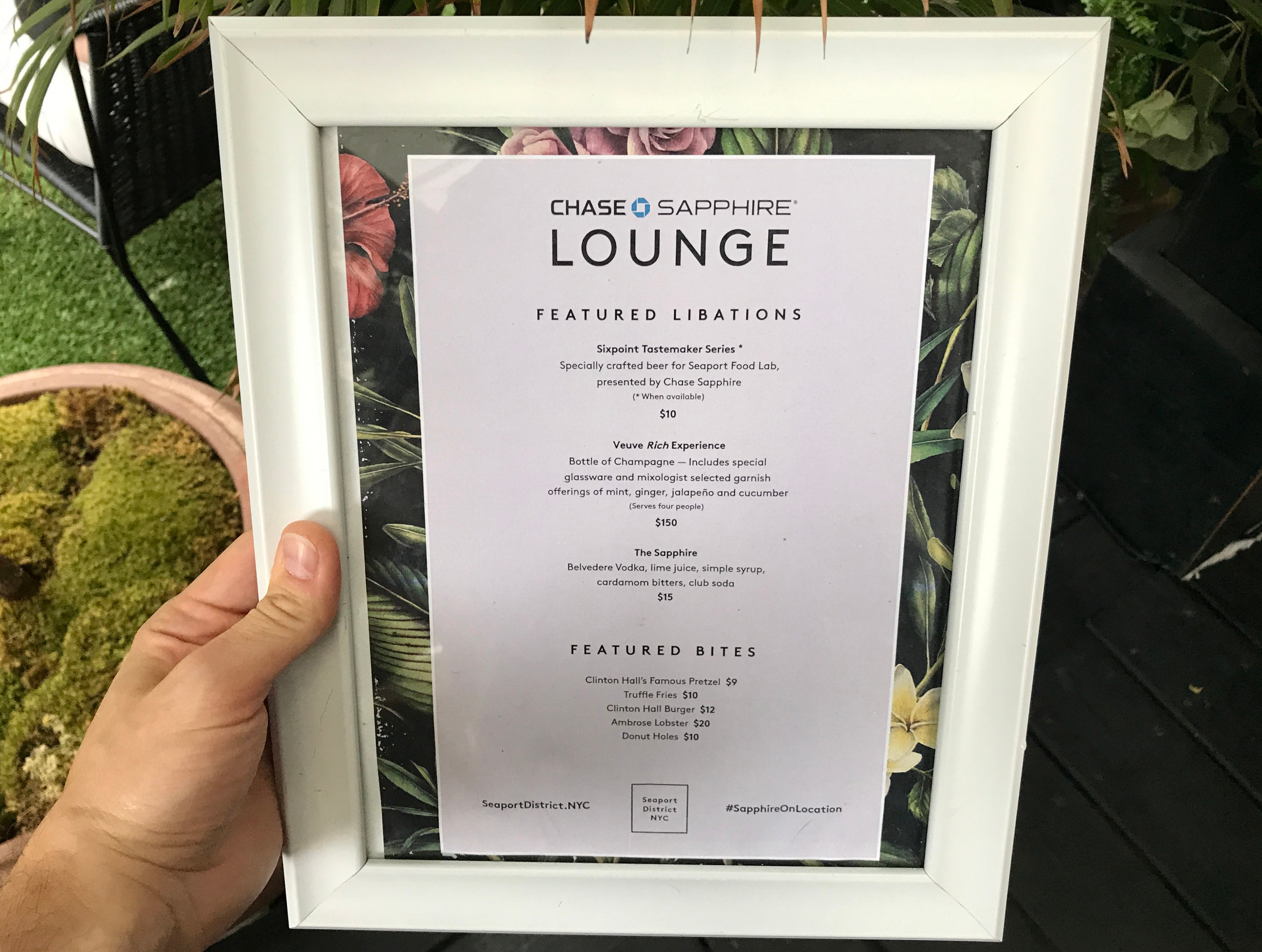 This summer, Chase is sponsoring a couple venues at the South Street Seaport in Lower Manhattan — a Chase Sapphire Lounge (with for-purchase food and drinks), and improved access to the in-demand Seaport Food Lab pop-up restaurant.