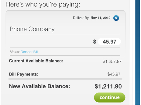 Bills can easily be paid with the Bluebird.